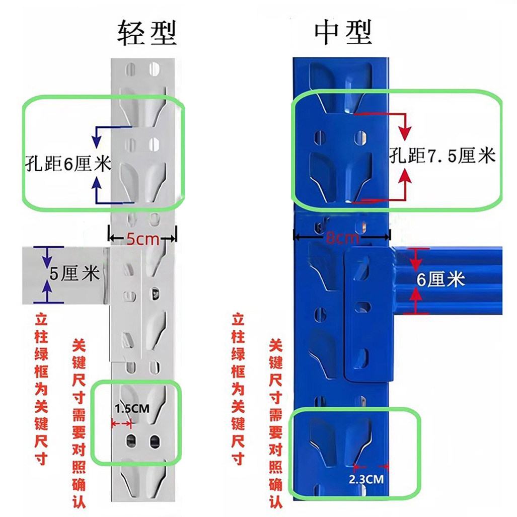 /重型/超重型蝴蝶孔立柱配件加厚仓储货架2.5/2/1.8/1.5米承重
