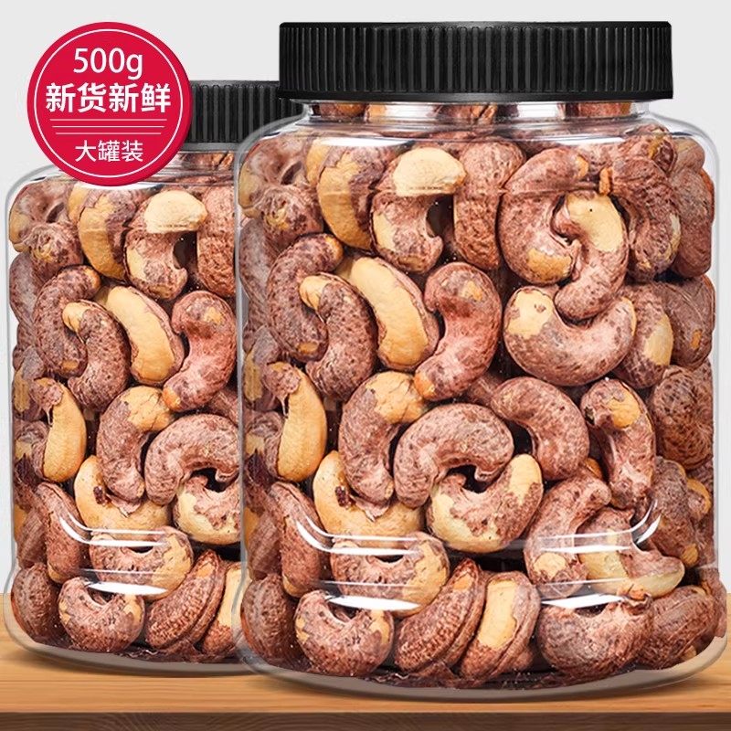 热销推荐腰果500g新货大颗粒带皮腰果仁越南盐焗紫皮坚果零食罐装