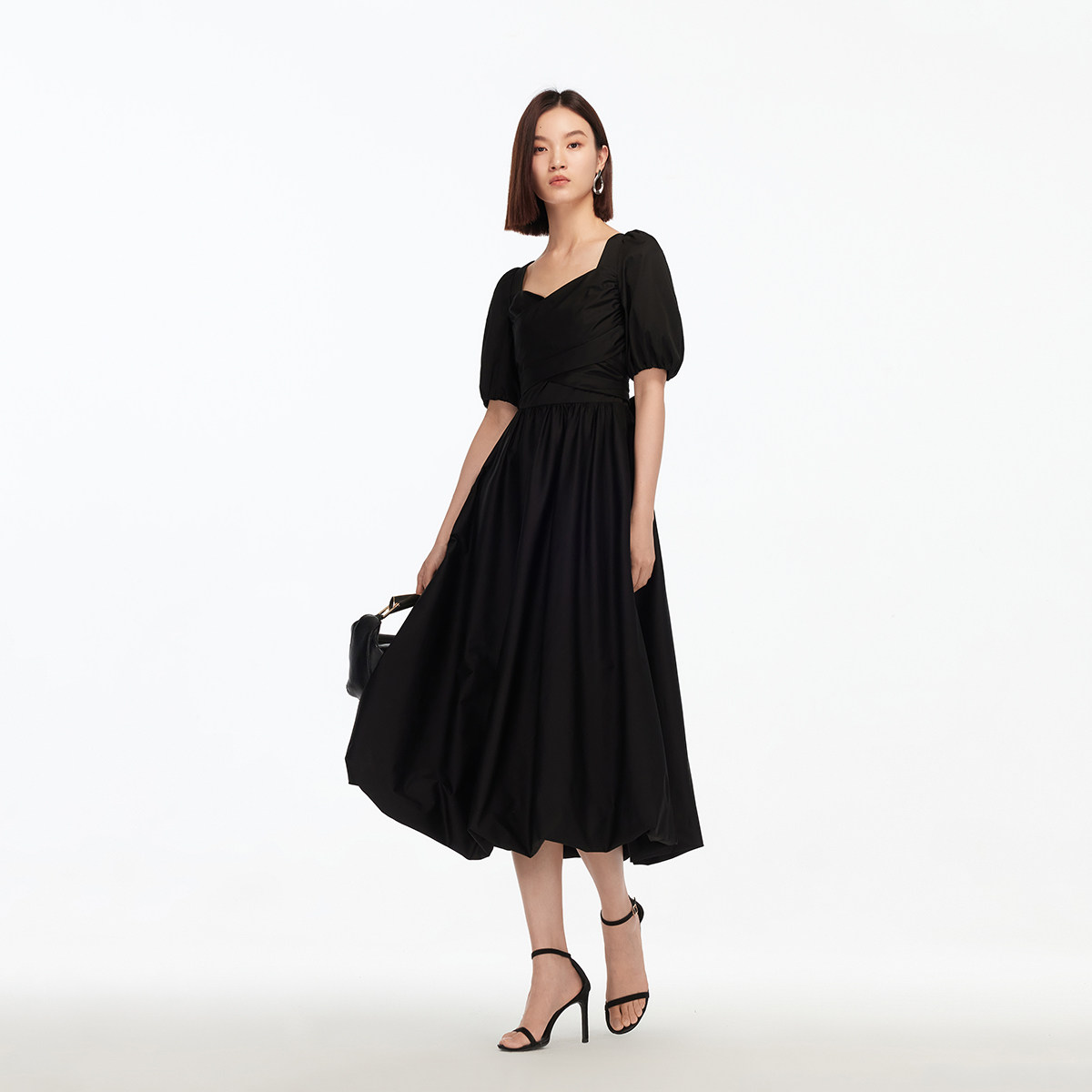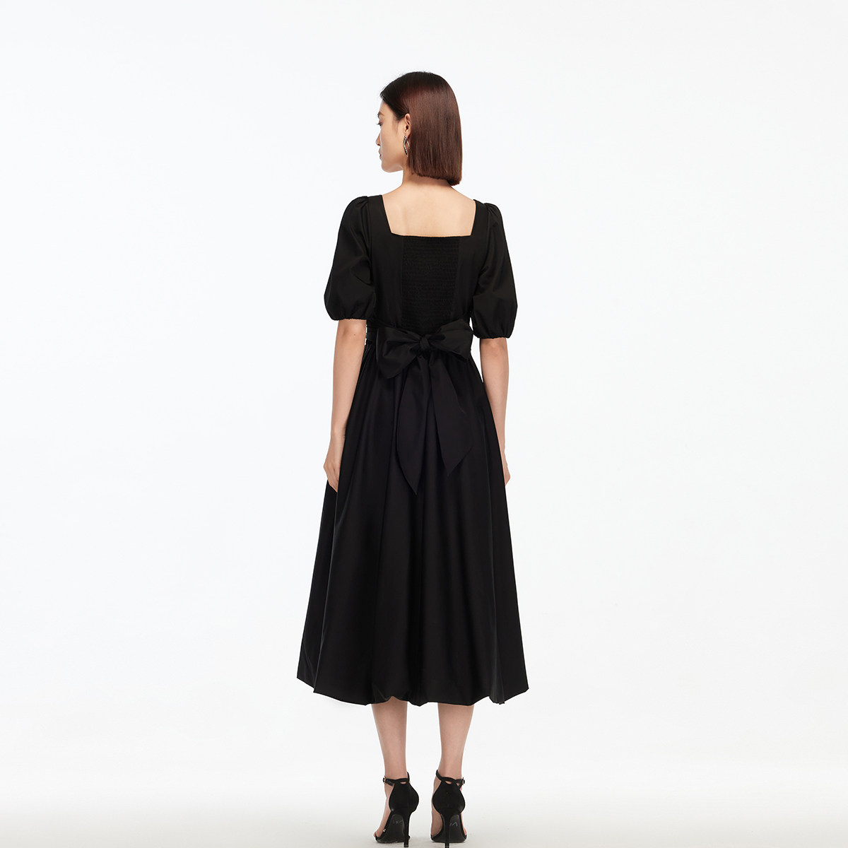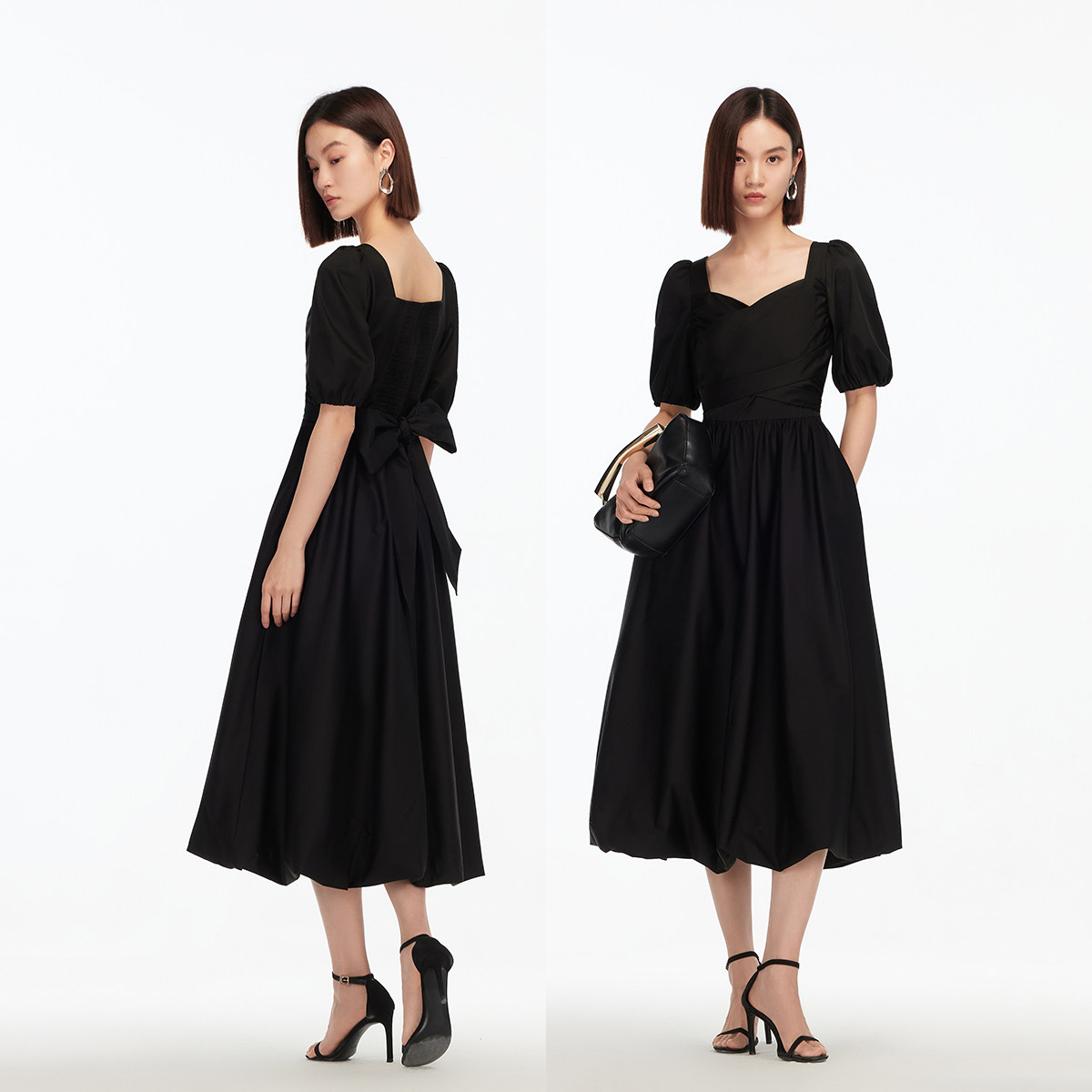 iqcq气球熊时尚辣妹套装秋季抹胸连衣裙女收腰一字肩黑色蓬蓬裙子
