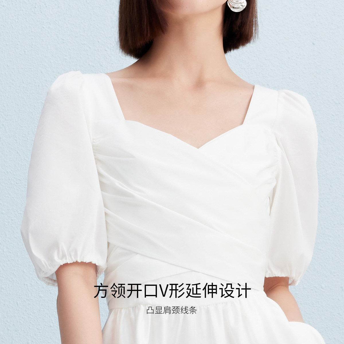 Vero Moda奥莱连衣裙女2025秋冬新款含棉交叉绑带捏褶长裙优雅