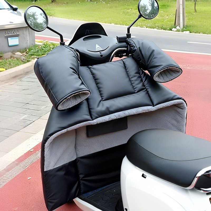 电动车挡风被电瓶摩托车防水罩秋冬季分体式PU皮加宽加绒加厚双面