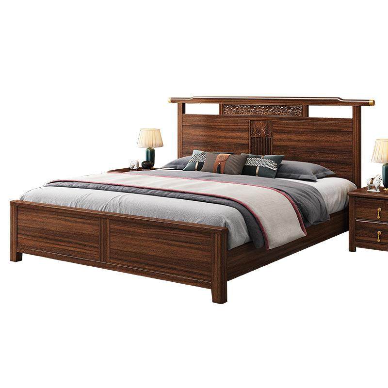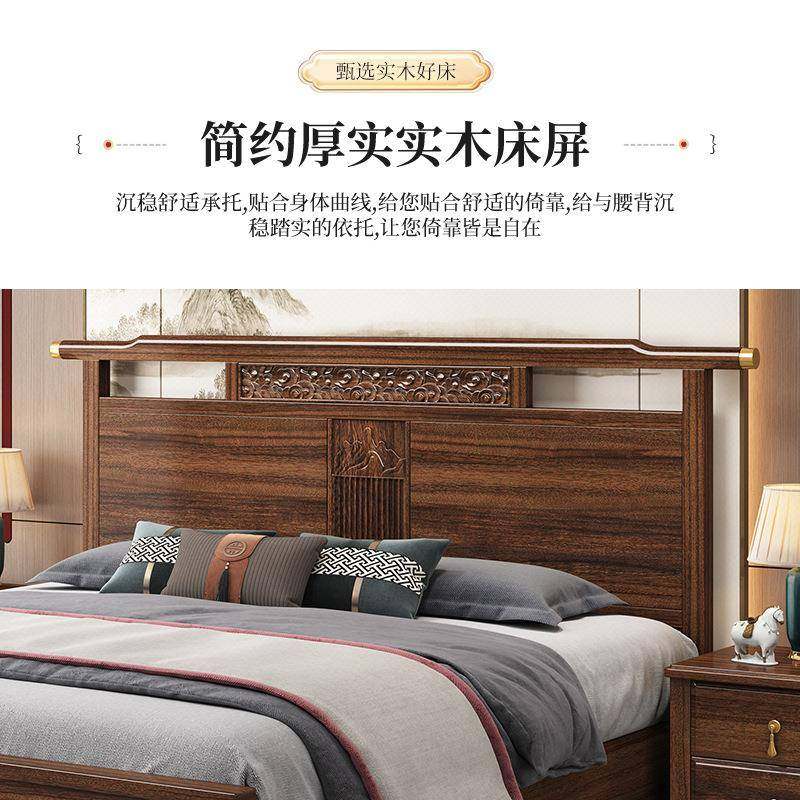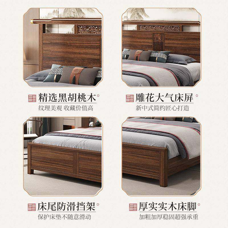黑胡桃新中式实木床1.5米1.8m双人床主卧大床静音婚床现代轻奢床