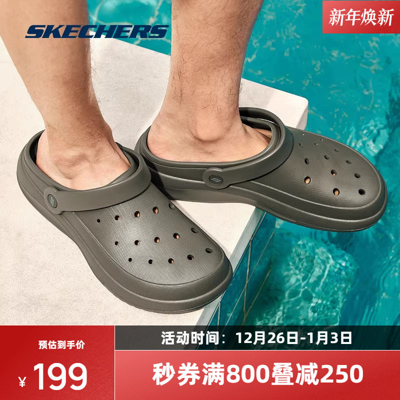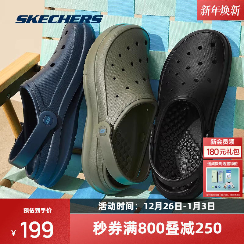 斯凯奇男鞋休闲运动沙滩鞋凉鞋凉拖轻质透气舒适百搭时尚洞洞鞋