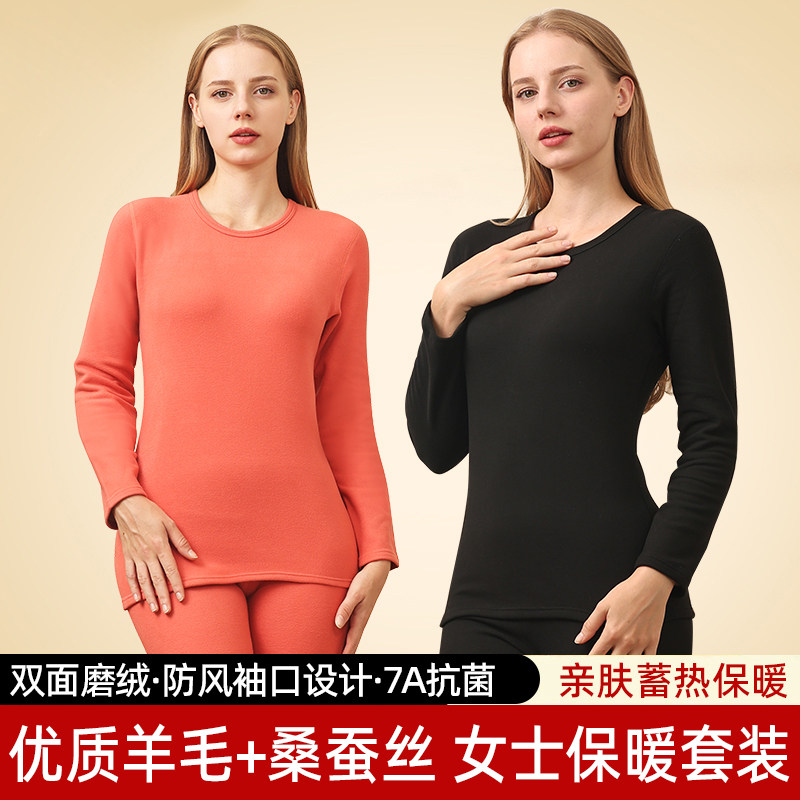 5A透气AB双面磨毛保暖内衣秋冬男女打底秋衣秋裤羊毛蚕丝保暖套装