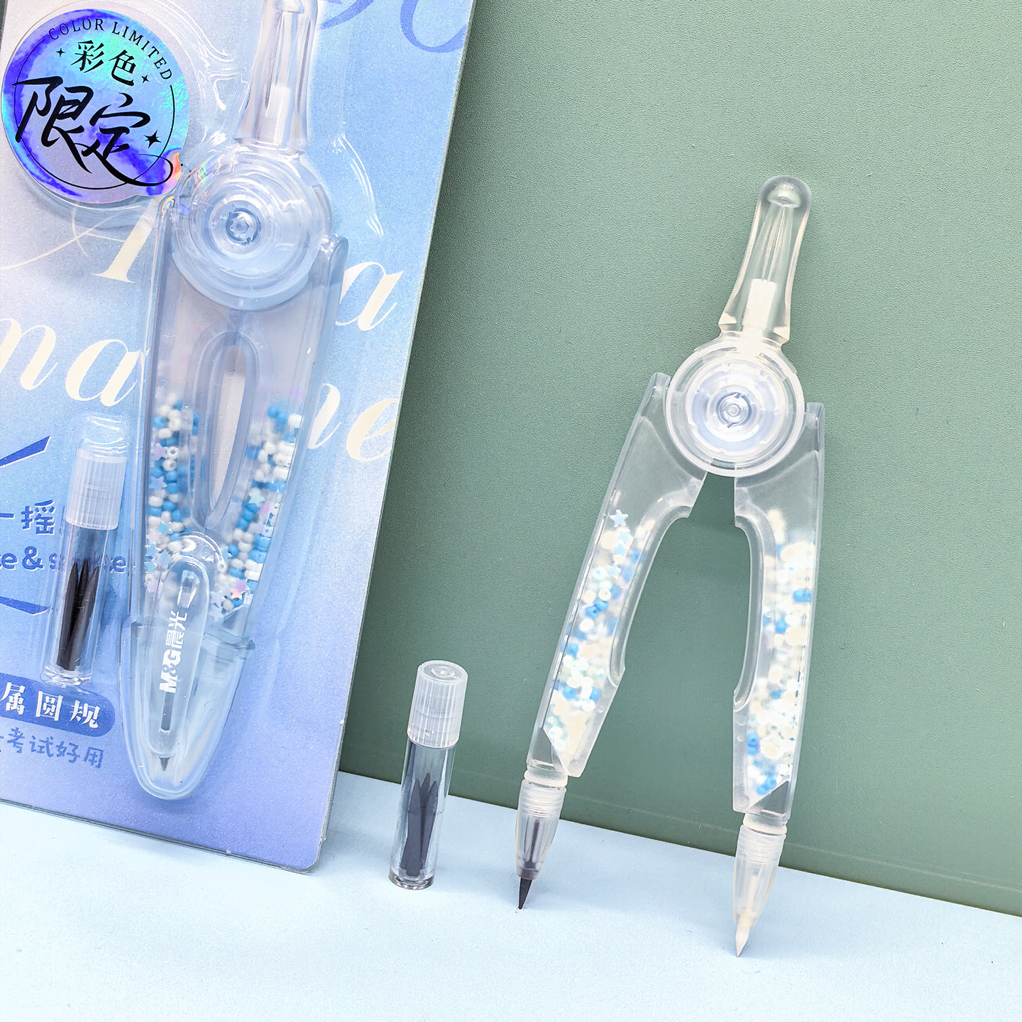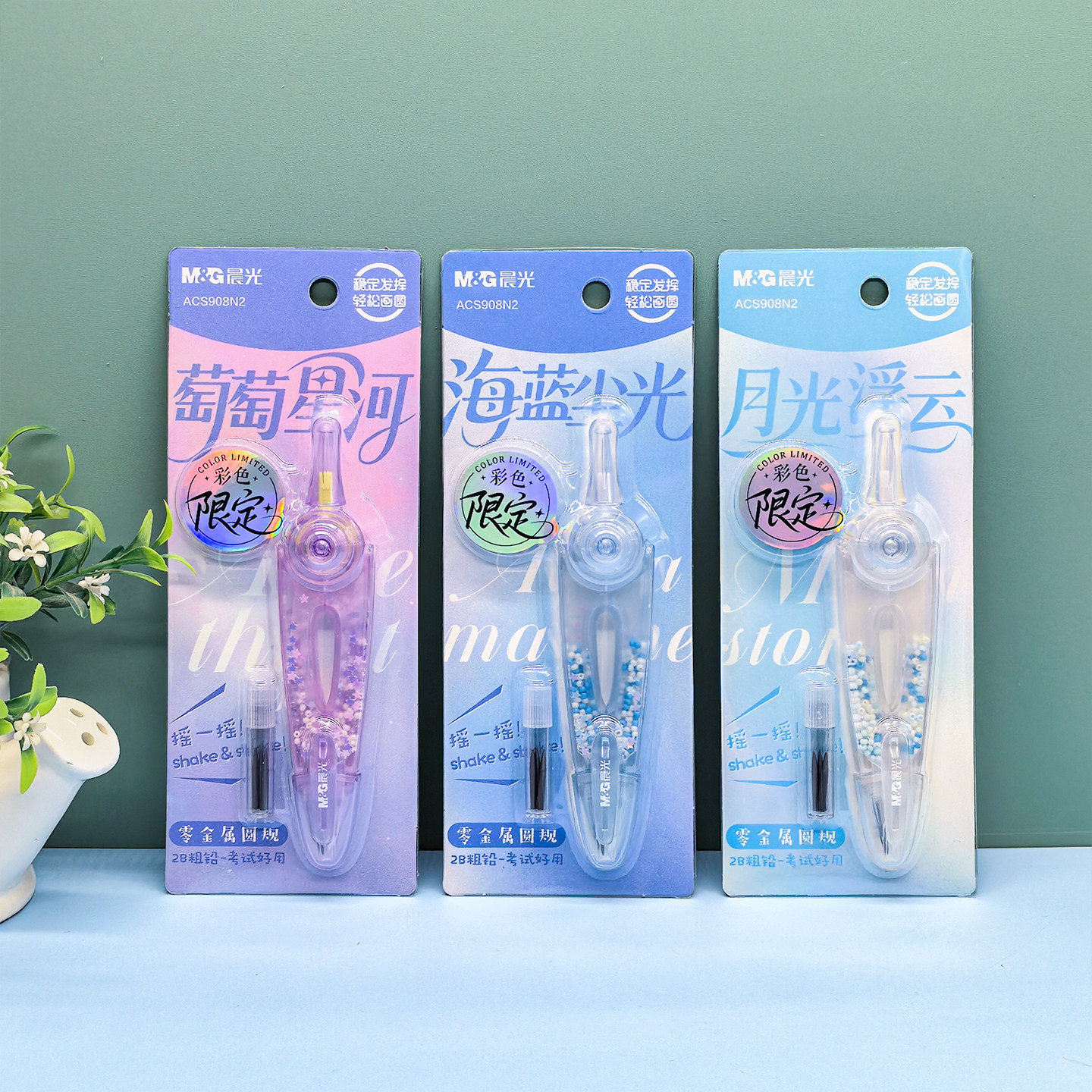 晨光 缤纷零金属圆规粗铅芯半透明摇一摇画圆旋转换芯中小学生备考试绘画圆形稳定轻松ACS908N2文具