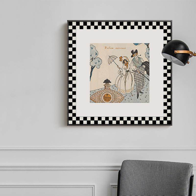 摩登女郎 现代法式复古巴黎时尚挂画小众艺术棋盘格卧室装饰画