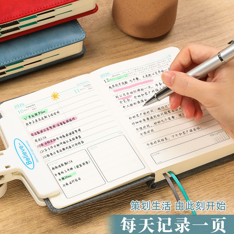 2026年日程本新款计划表365天每日时间管理效率手册大学生日历自律打卡本高颜值记事本文艺精致手账笔记本子