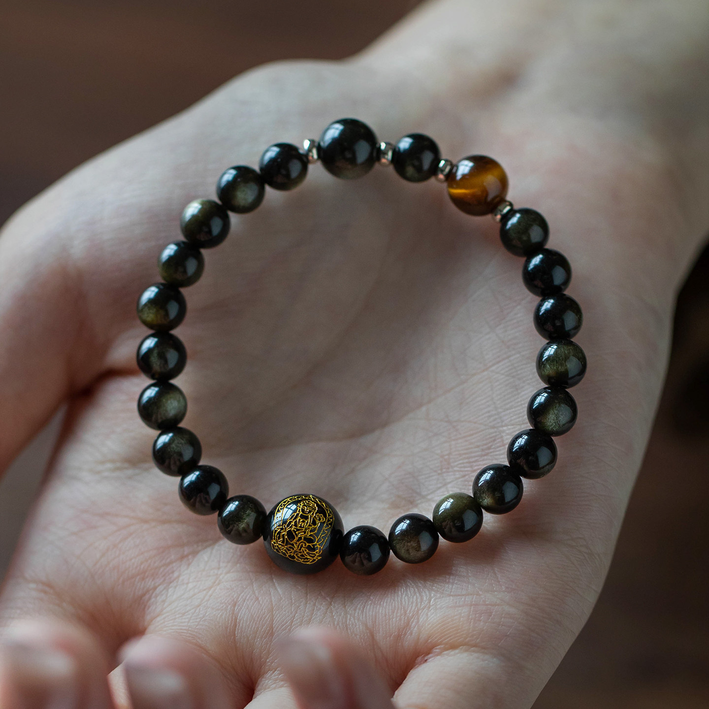 天然黑曜石手串男士平安守护马年本命年手链串珠男士高端手串礼物