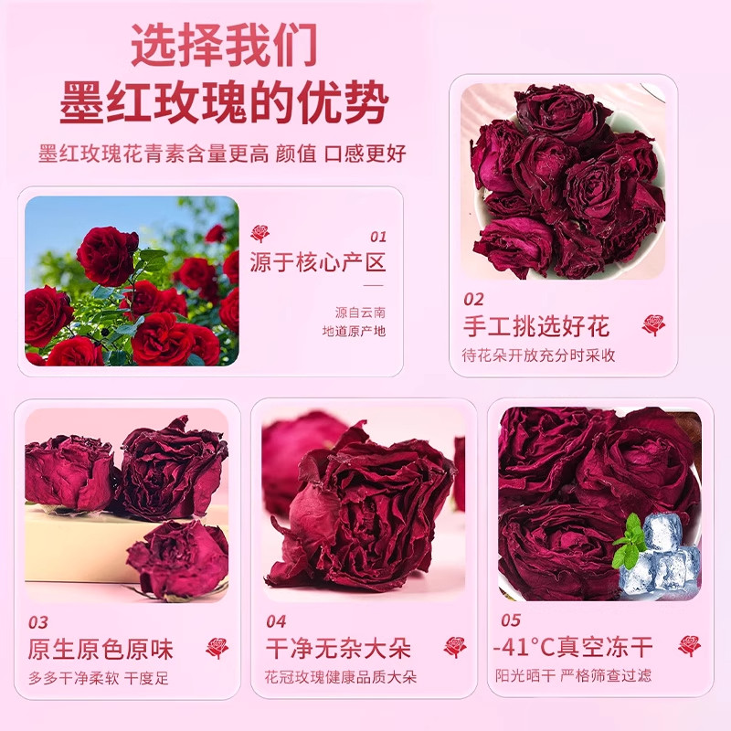 北京同仁堂墨红玫瑰大朵冻干重瓣云南玫瑰花茶正品官方旗舰店新鲜