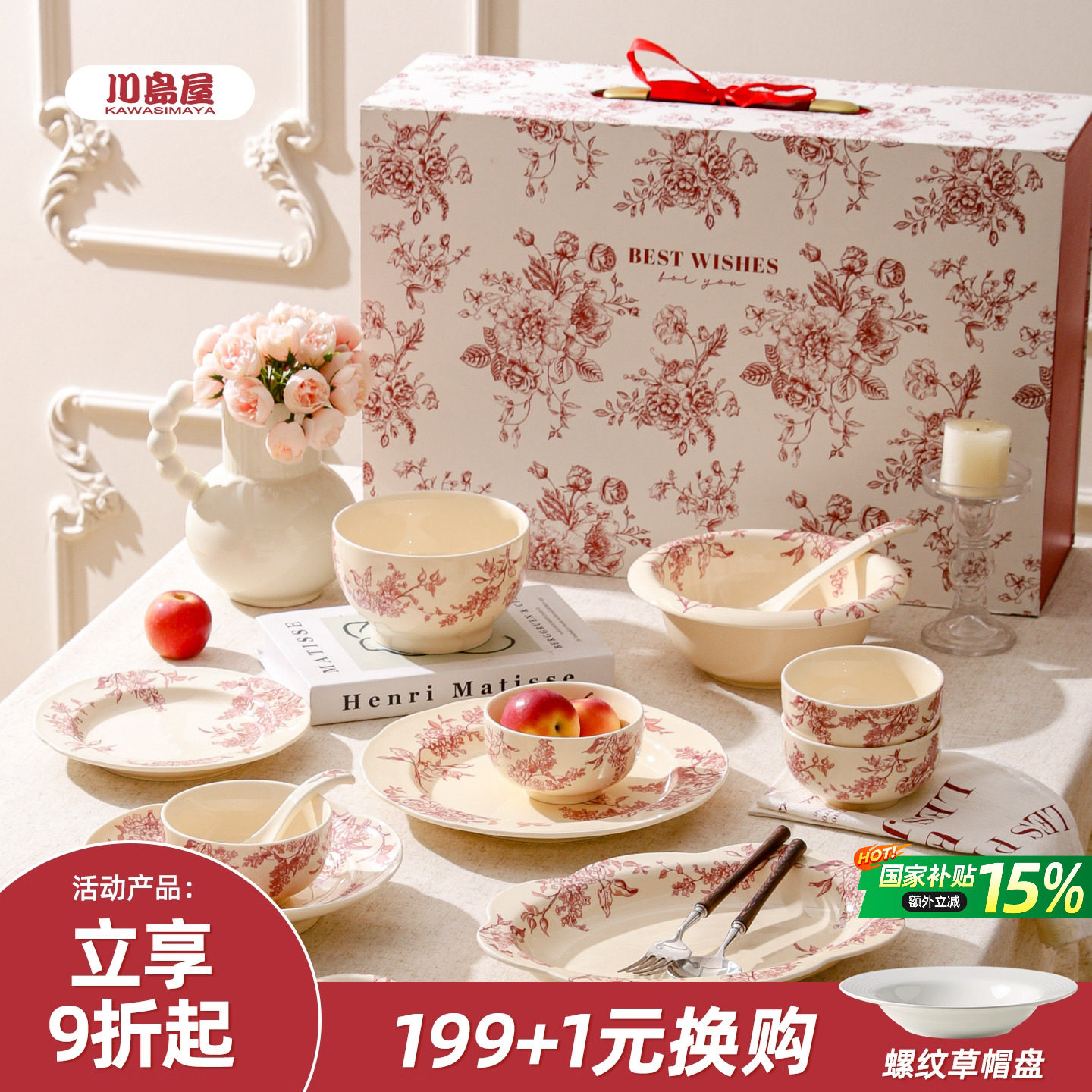 川岛屋丁香花海餐具套装碗碟家用高颜值订婚新婚礼物乔迁新居礼盒