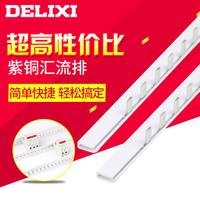 。德力西空开断路器接1P 63A加厚单出纯紫铜汇流排连 排1单进米包