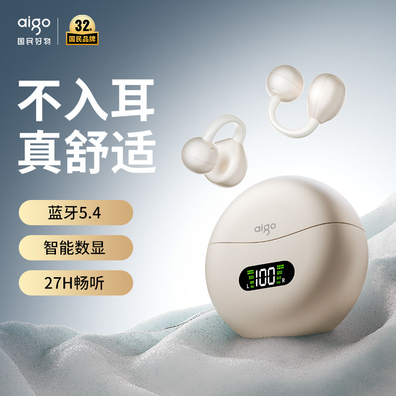 爱国者蓝牙耳机夹耳式开放无线2026新款骨传导不入耳超长续航运动