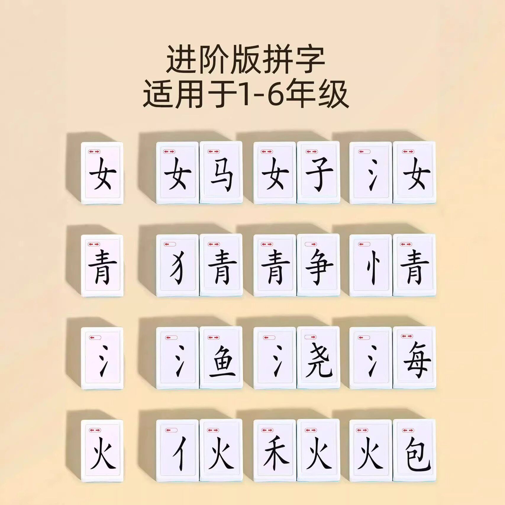 儿童拼汉文字麻将偏旁部首整体认知词汇组合卡牌游戏亲子互动桌游