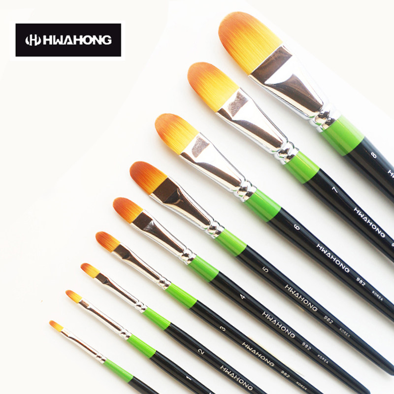 红杆尼龙油画笔水彩笔扁平头尼龙毛刷1-12号多种型号学生美术色彩笔刷