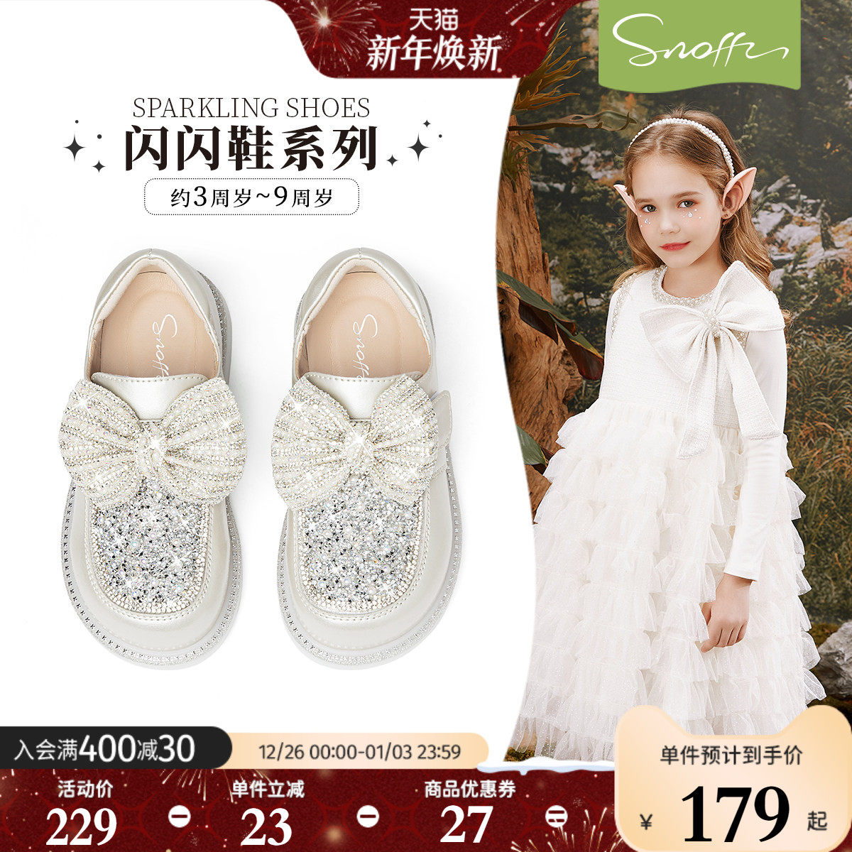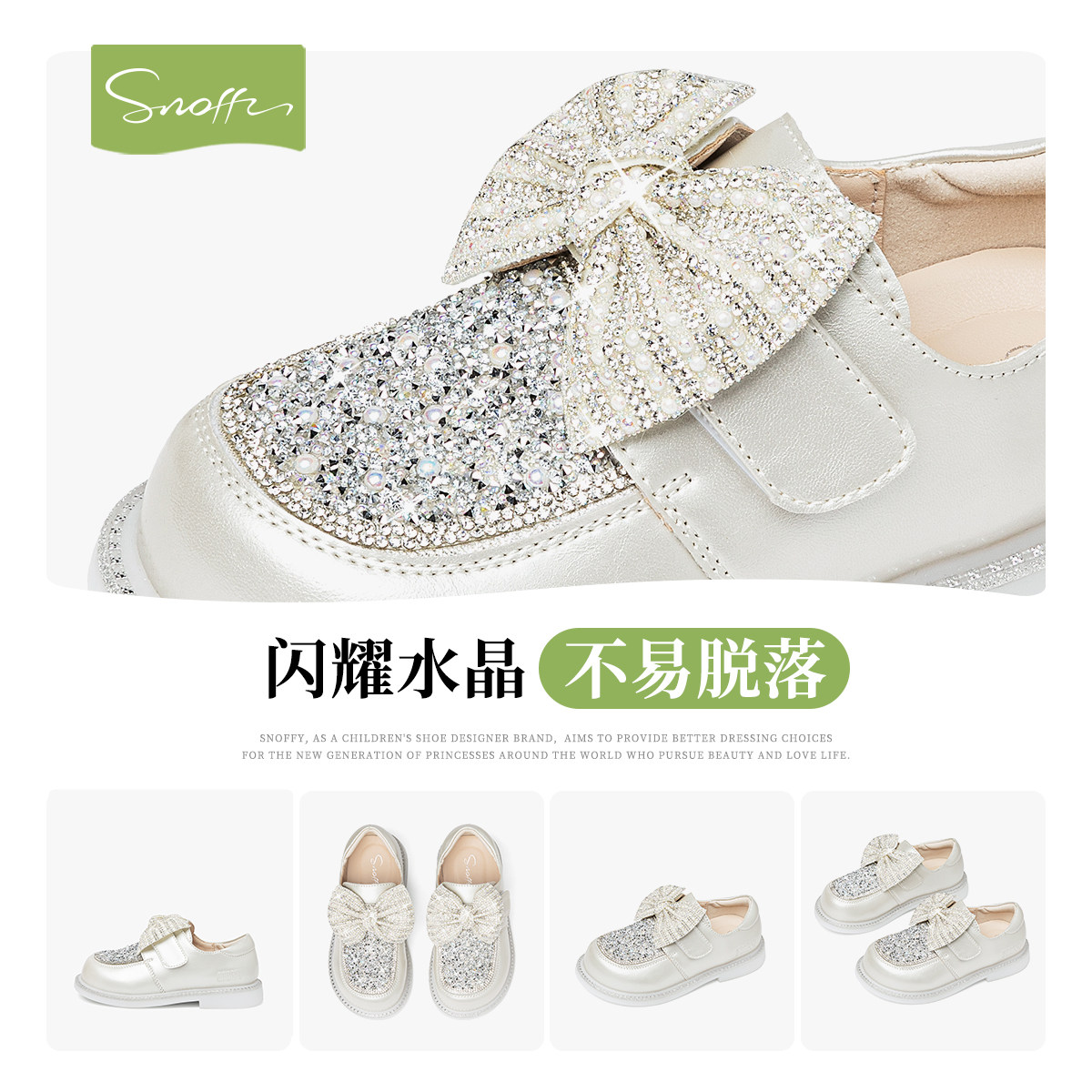 斯纳菲女童皮鞋秋季新款公主水晶鞋闪亮舞台