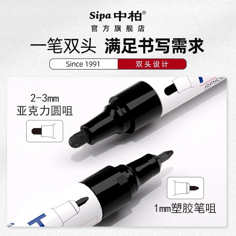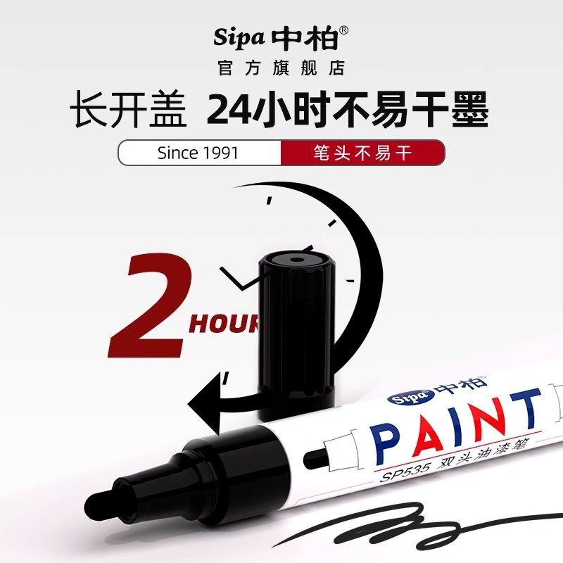 中柏双头油漆笔SP535白色补漆签名笔防水防油不易掉色黑色记号笔
