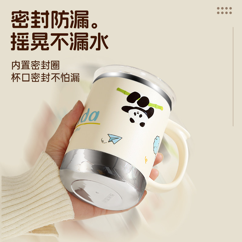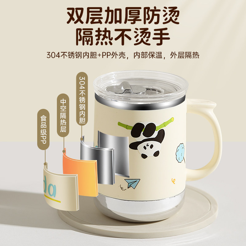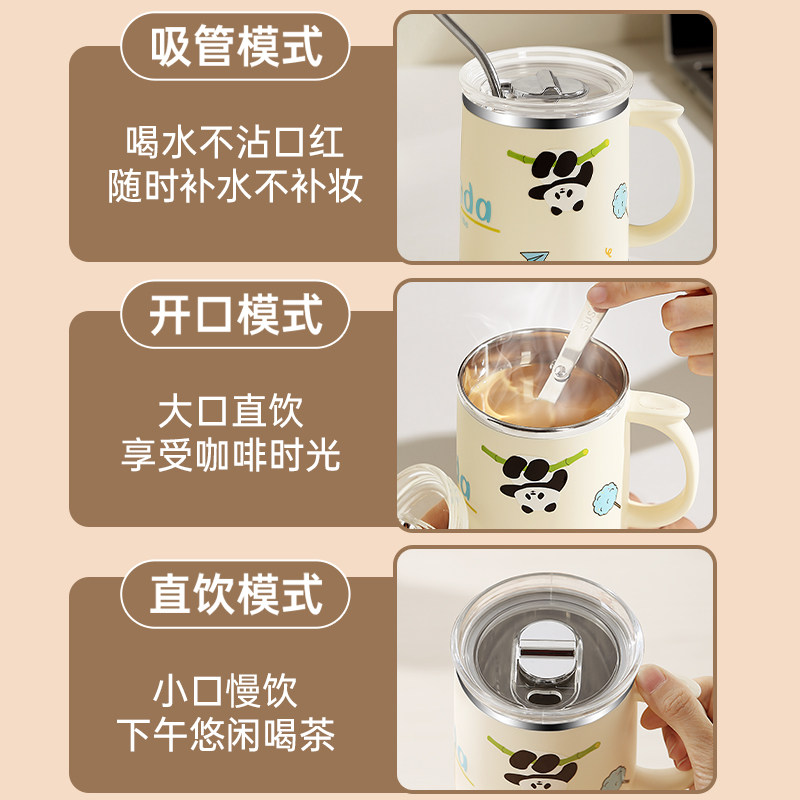咖啡杯子水杯家用女生专用高颜值办公室不锈钢马克杯带盖带勺吸管