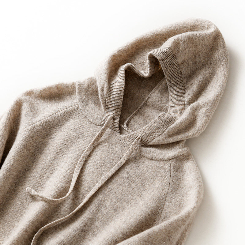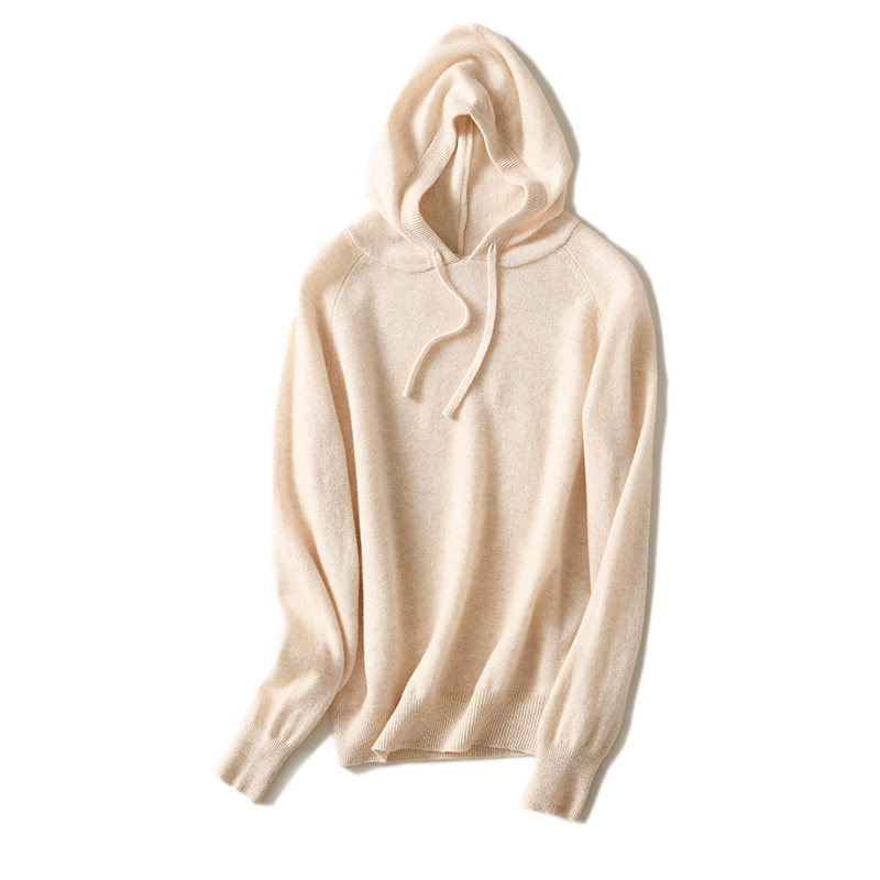 100%羊毛连帽韩版卫衣女减龄羊绒衫秋冬针织衫薄款宽松外穿套头衫