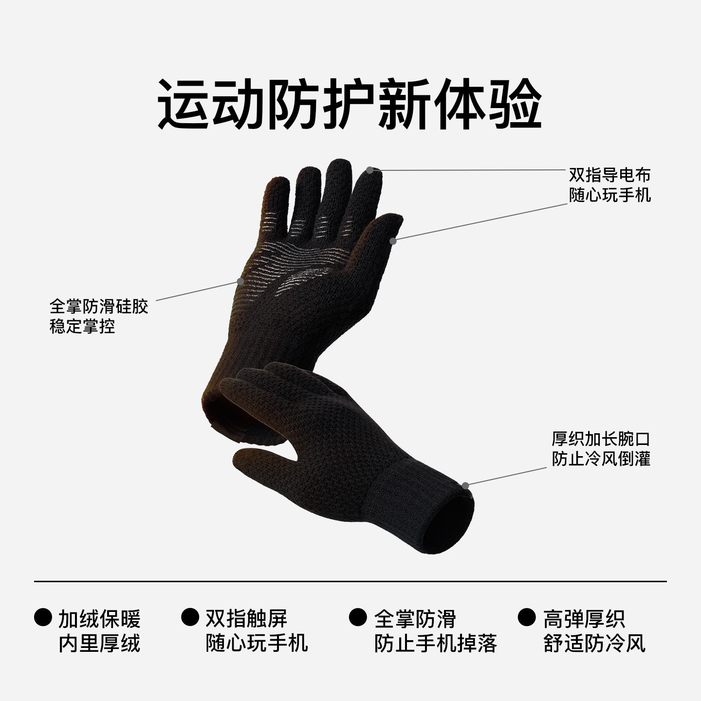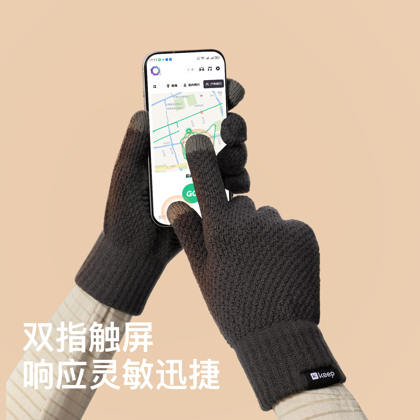 Keep加绒保暖针织触屏手套运动骑行跑步全掌防滑防寒保暖加厚手套