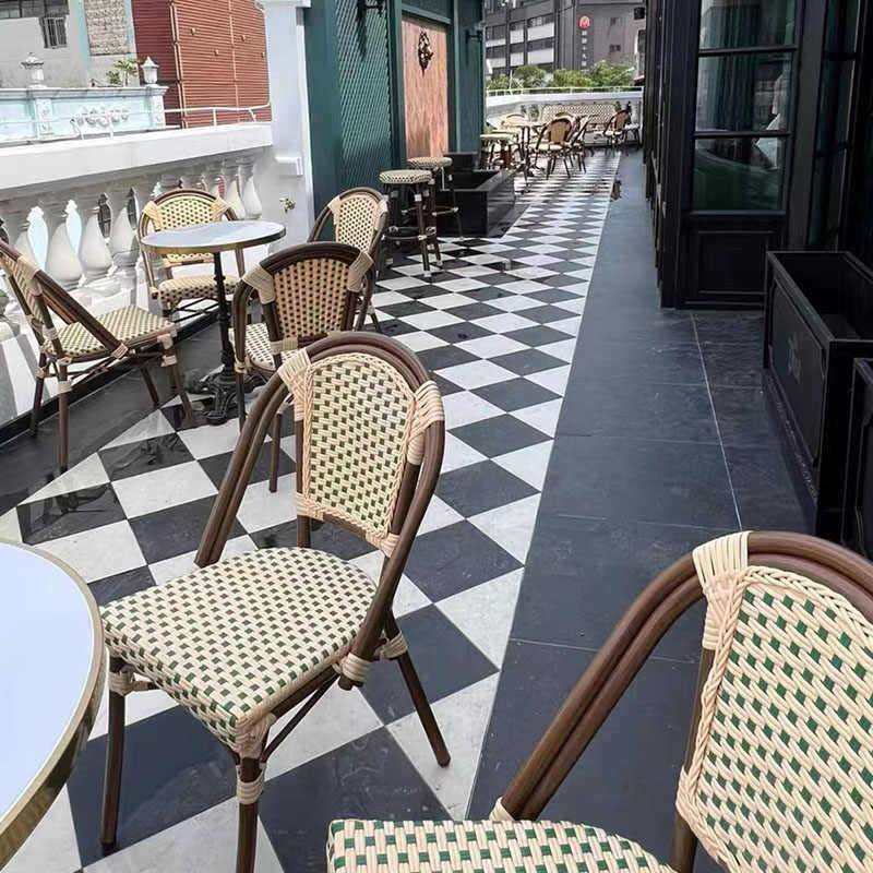 户外岩板大理石餐桌法式咖啡厅西餐厅奶茶店民宿复古藤编桌椅组合