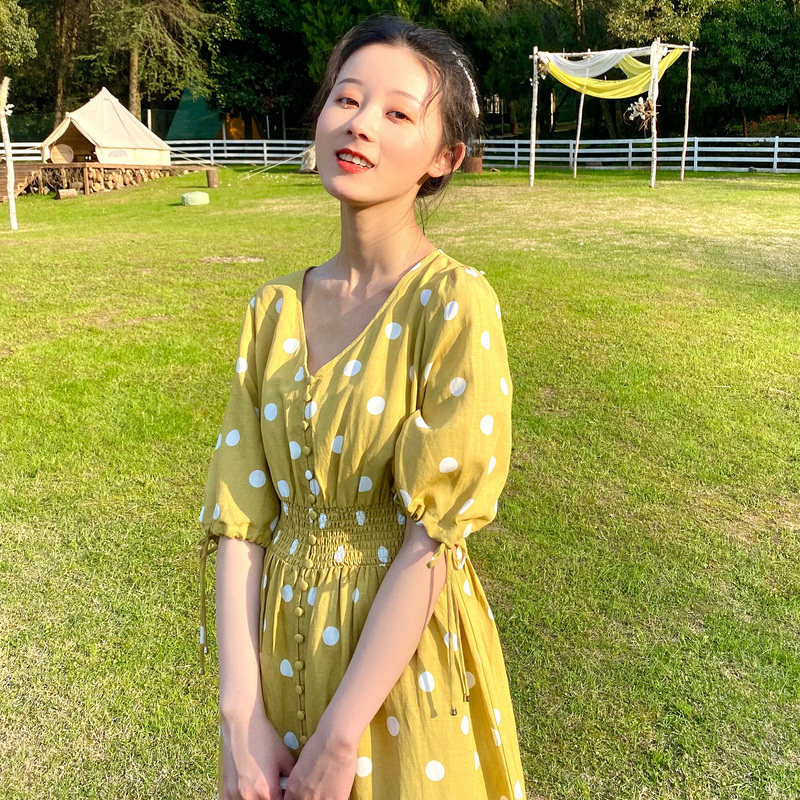唐狮夏轻熟风女装连衣裙韩版收腰显瘦法式茶歇甜美超乖裙子气质