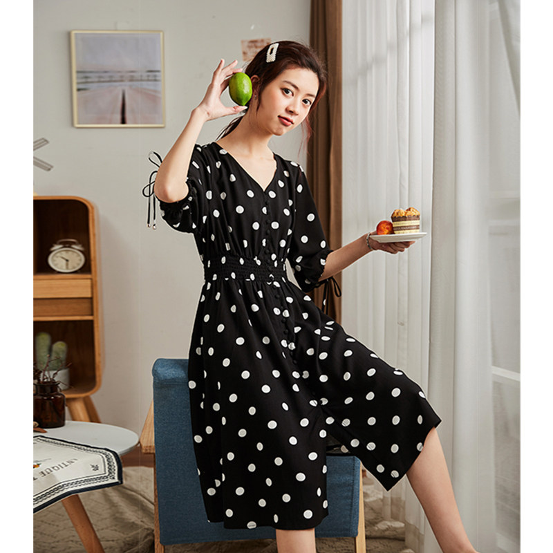 莫代尔短袖连衣裙夏季薄款家居睡裙宽松休闲中长款木耳边a字裙子