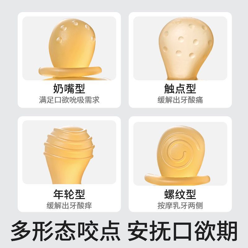 小月龄牙胶婴儿磨牙棒安抚宝宝小蘑菇咬胶口欲防吃手3个月6可水煮
