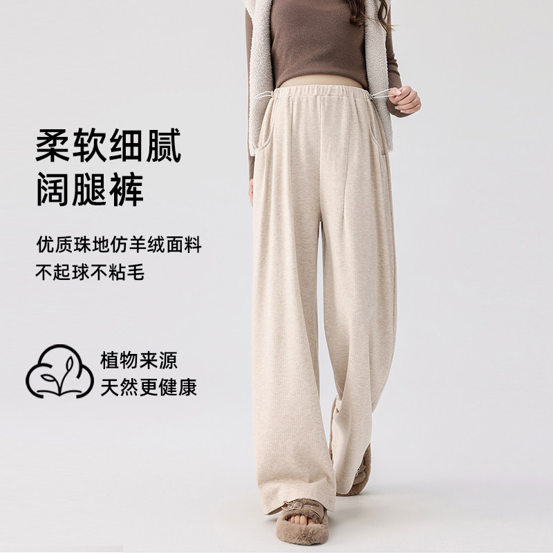 孕妇裤冬季加绒加厚2025新款羊羔绒直筒裤子时尚外穿秋冬款阔腿裤