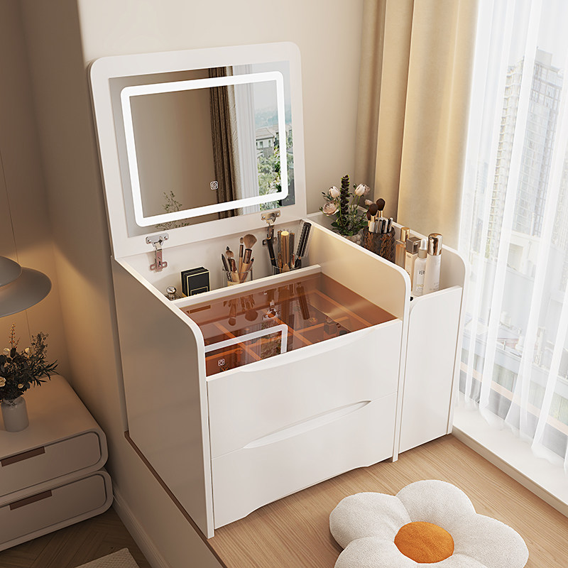 飘窗梳妆台翻盖奶油风化妆台床头柜一体卧室榻榻米小户型化妆柜