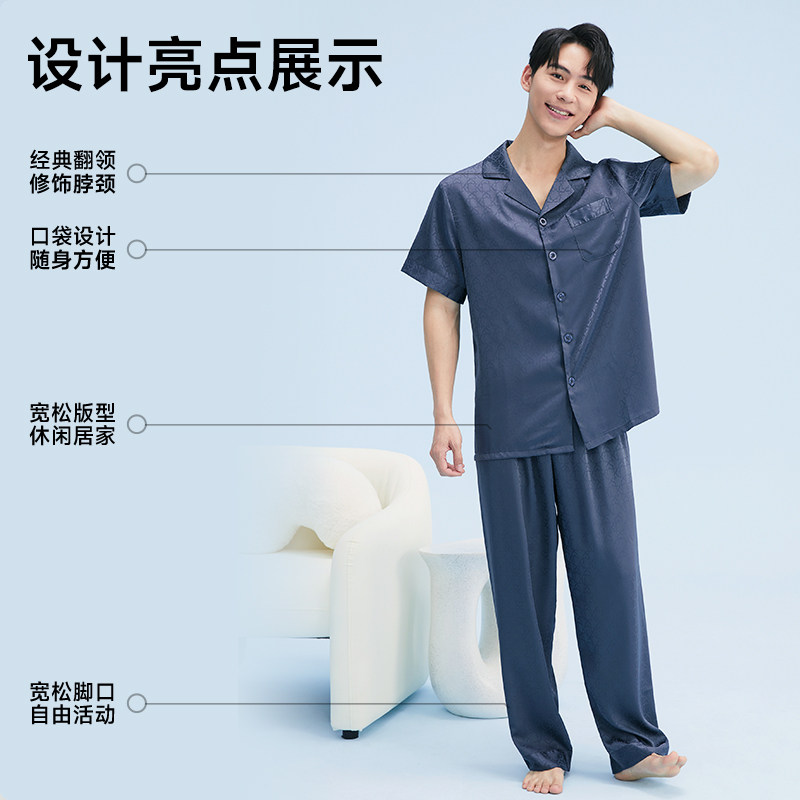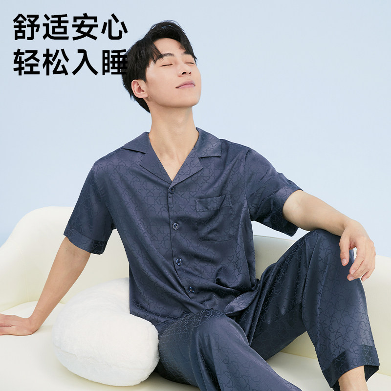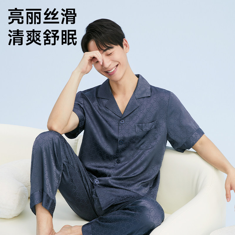 GOSO香蜜闺秀睡衣男短袖长裤凉感薄款春夏款宽松可外穿家居服套装