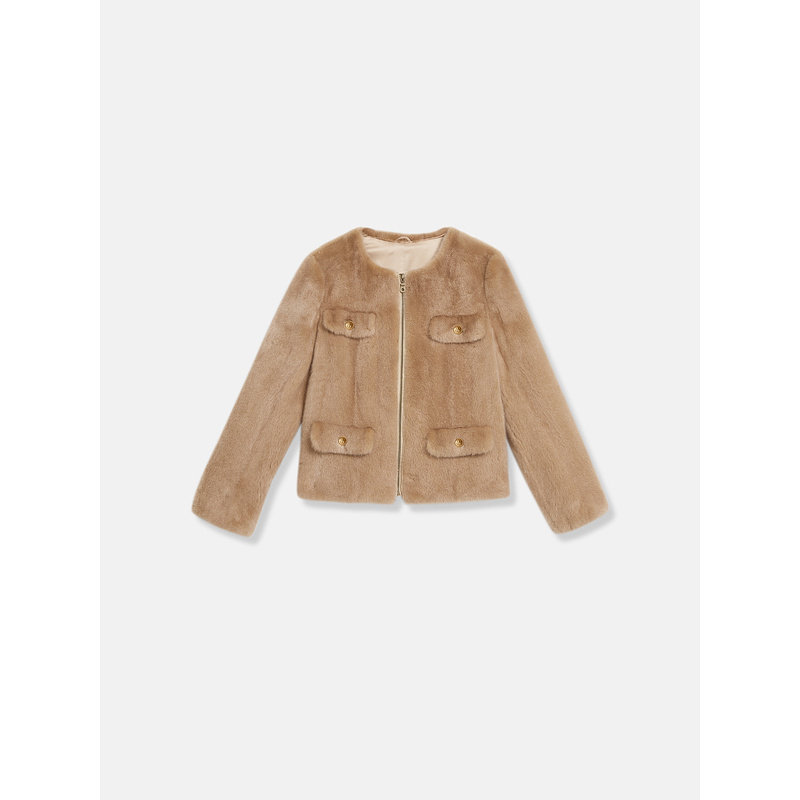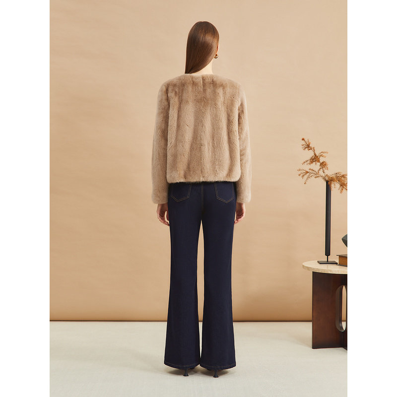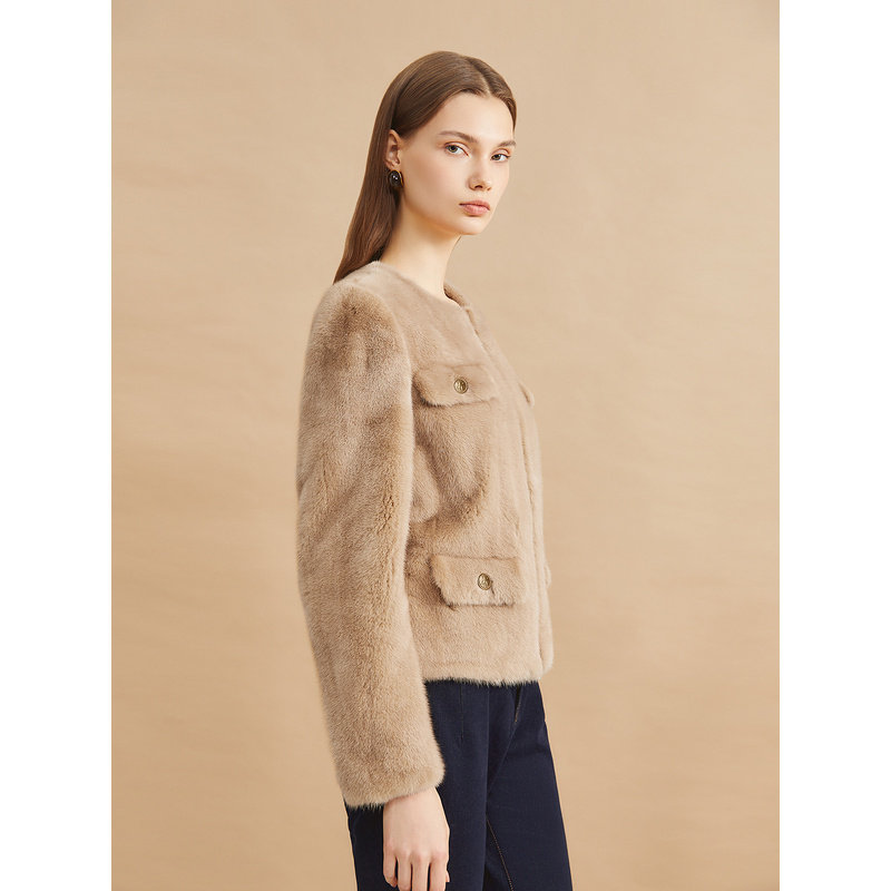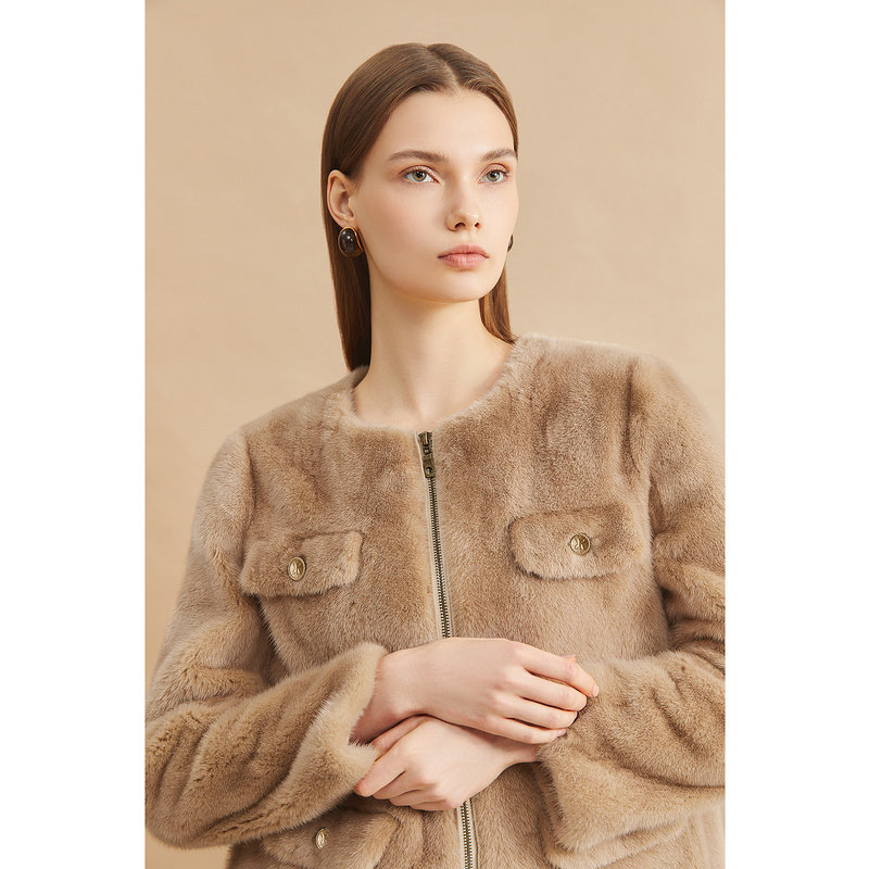 YINER音儿专选女装冬季时尚优雅轻奢感短款圆领水貂毛皮草外套