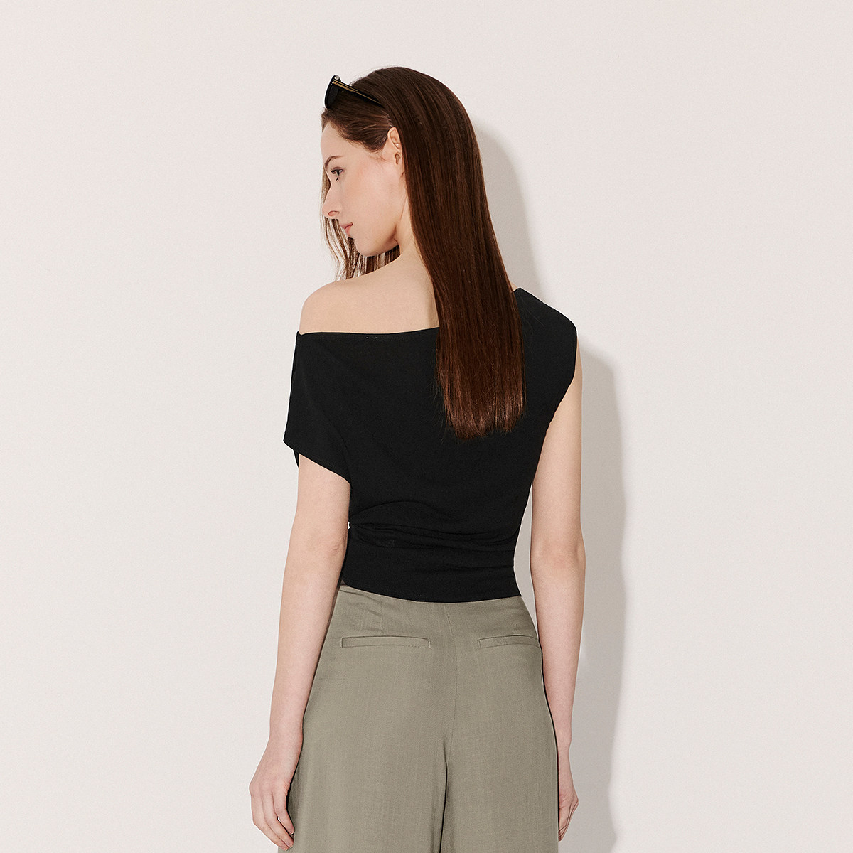 【新品】OCHIRLY欧时力 针织衫2026春夏蚕丝莱赛尔斜肩一字领短袖