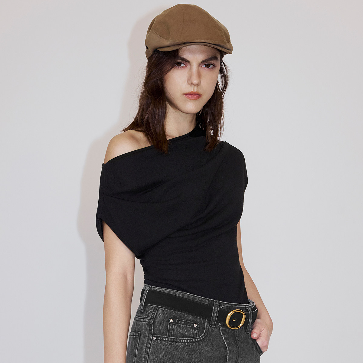 【新品】OCHIRLY欧时力 针织衫2026春夏蚕丝莱赛尔斜肩一字领短袖