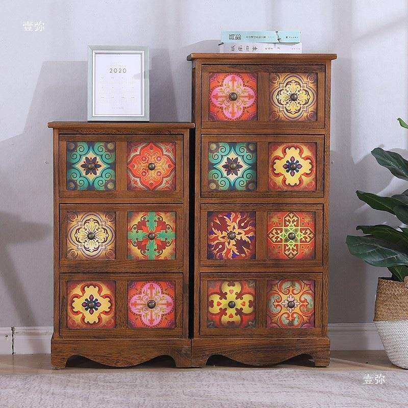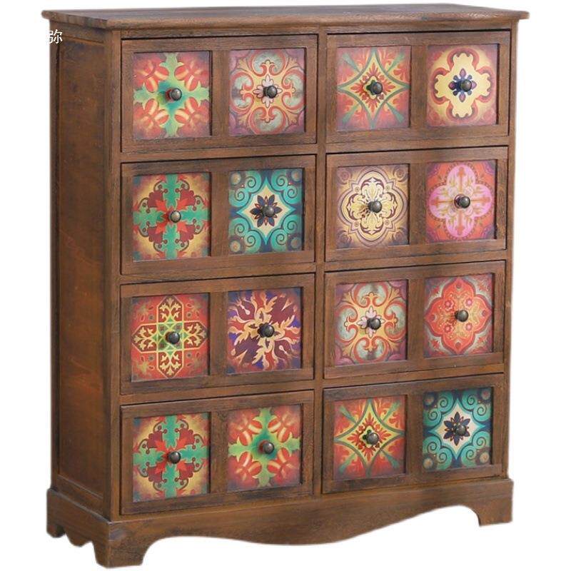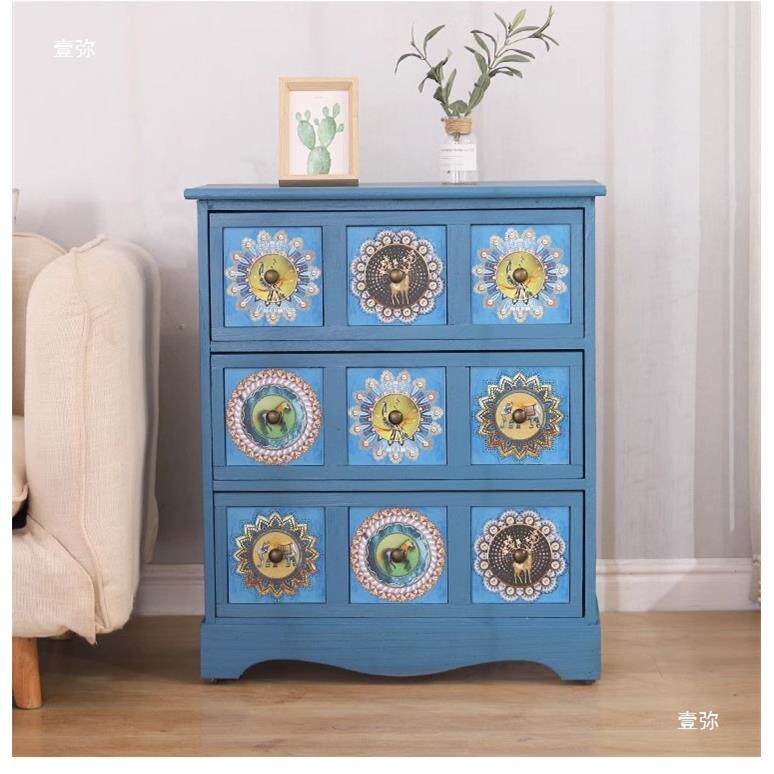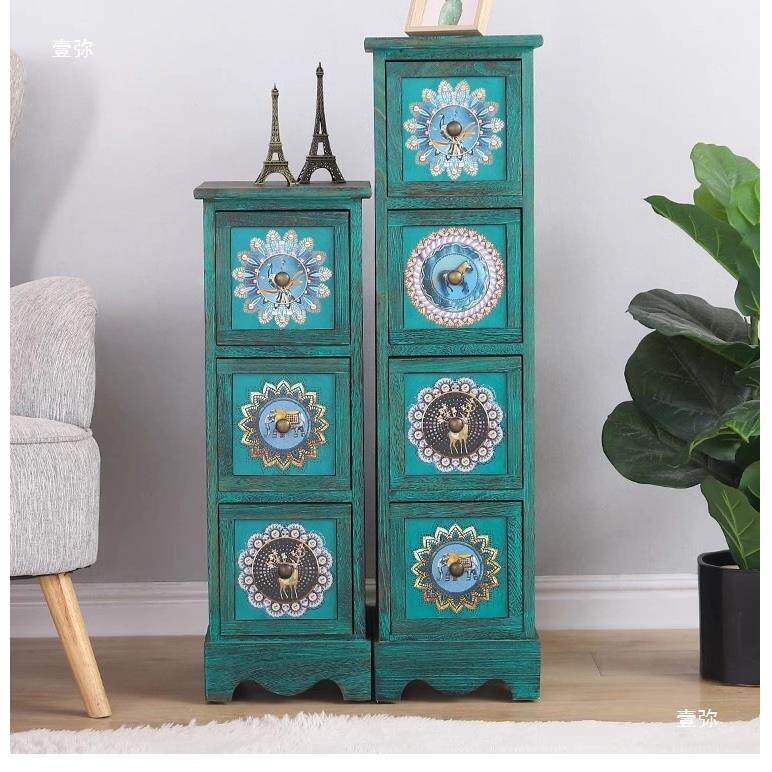 美式实木斗柜夹缝收纳柜复古彩绘客厅玄关柜卧室床头边柜子大容量