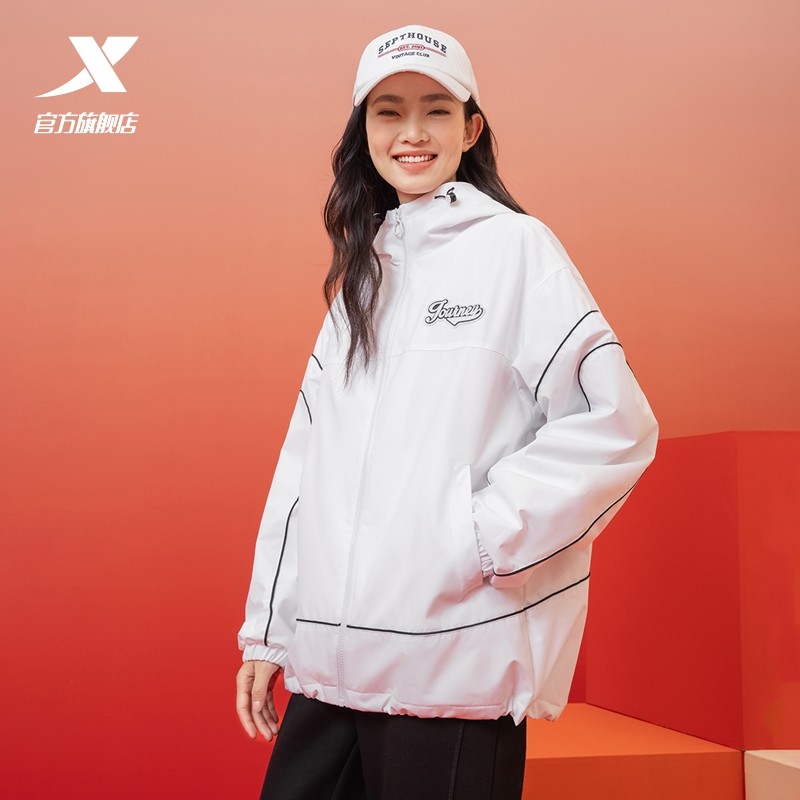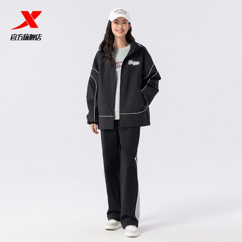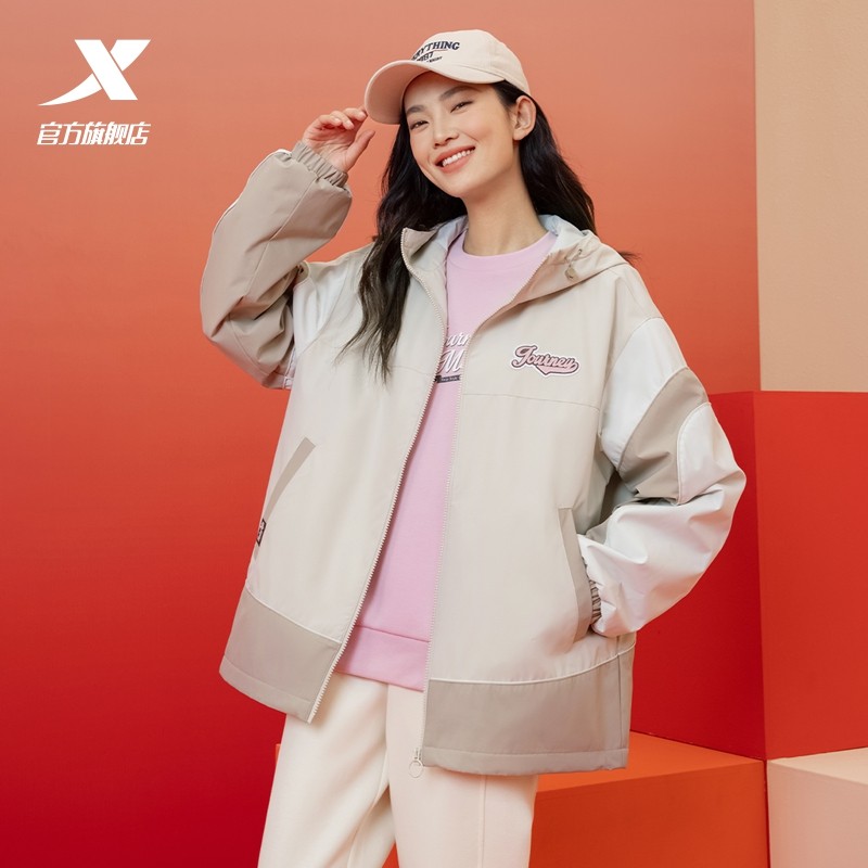 特步保暖厚外套女款2025春新款户外运动休闲夹克风衣975128160237