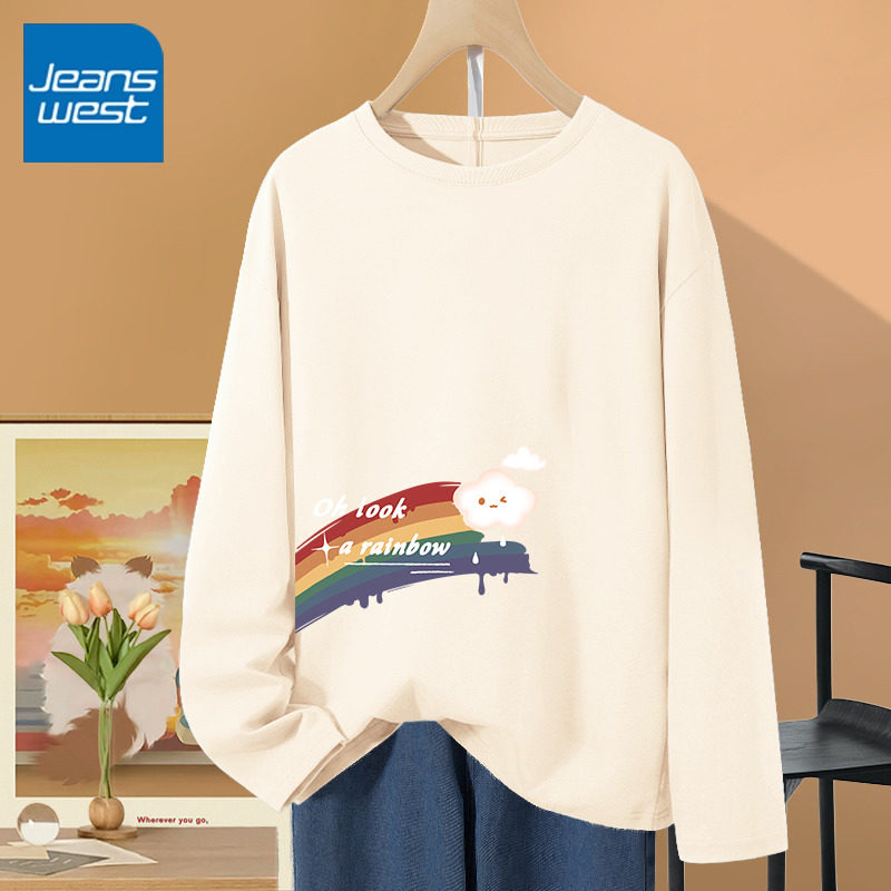 KYV真维斯杏色长袖t恤女2025新款春秋款休闲运动上衣宽松长袖秋装