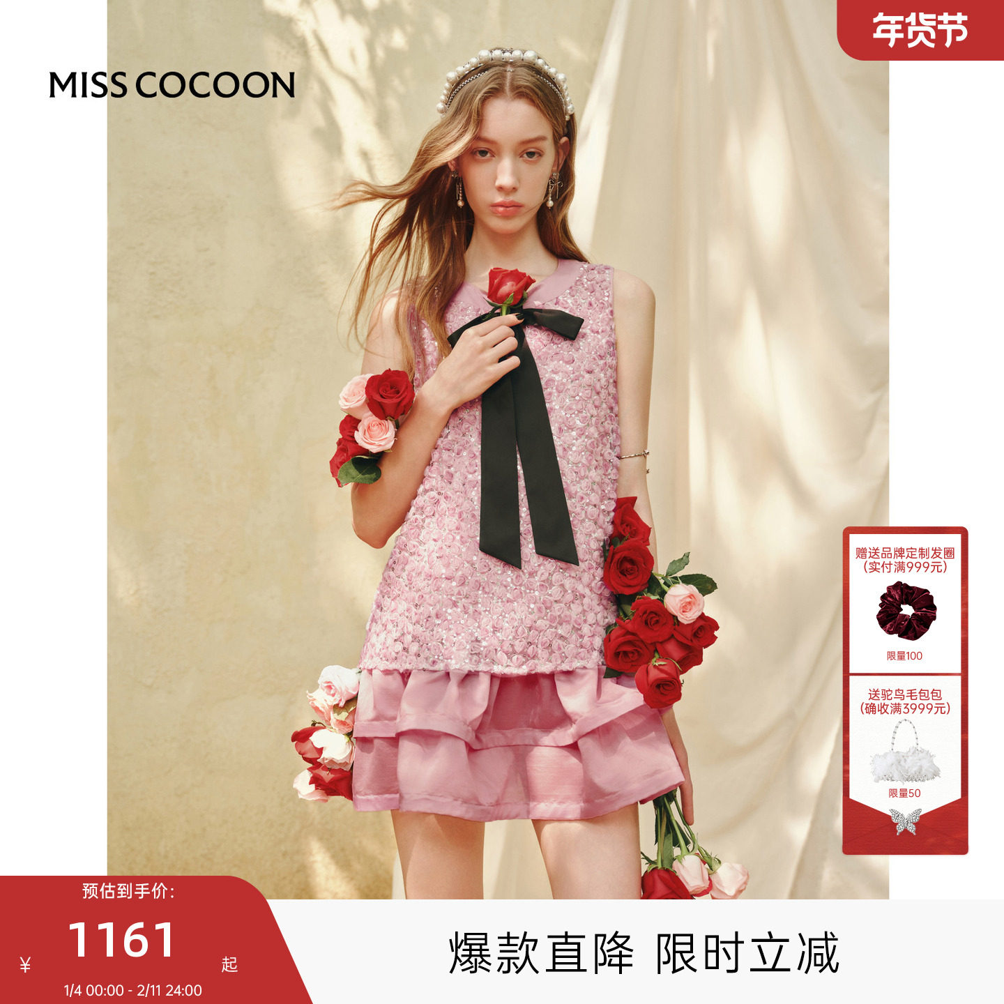MISSCOCOON可可尼粉色约会礼服裙女2025秋季新款小香风无袖连衣裙
