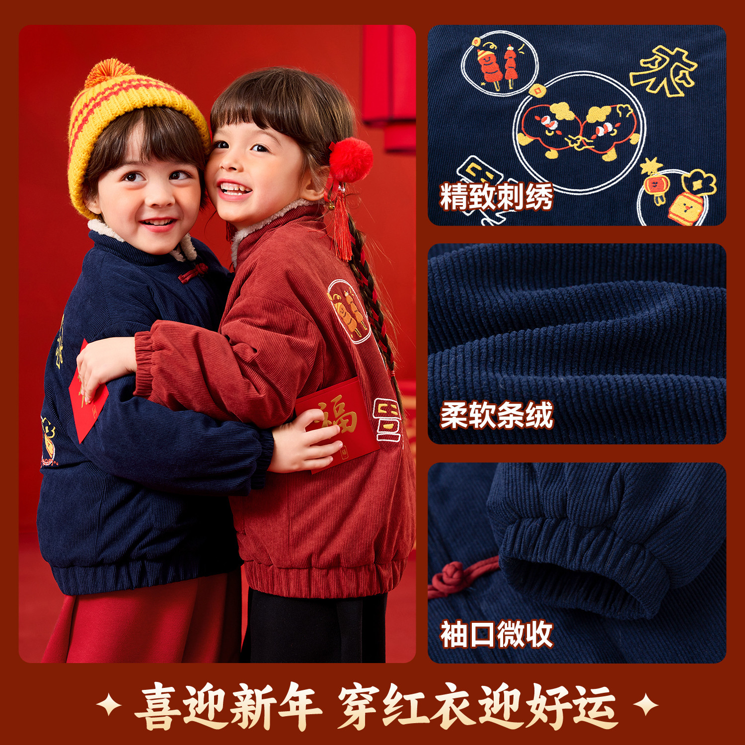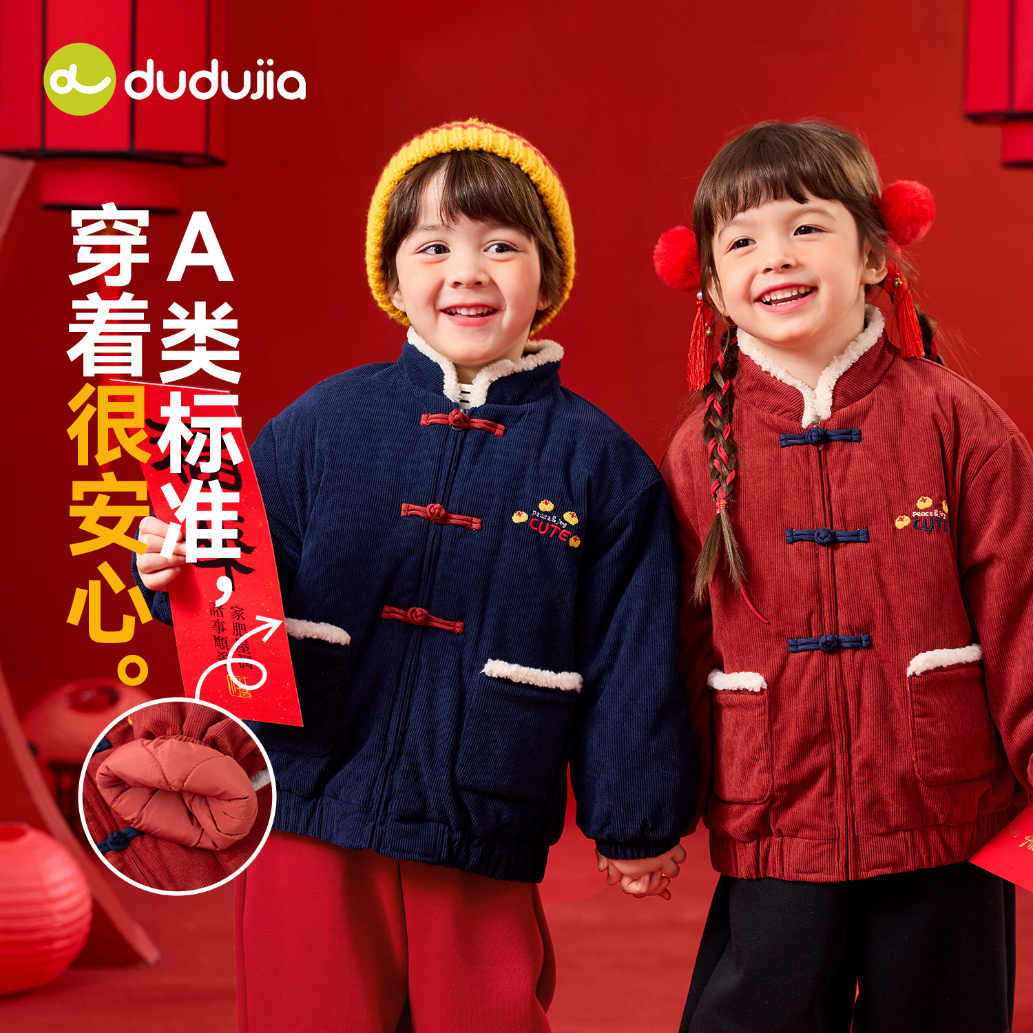 嘟嘟家男童拜年服红色新年装唐装棉服冬儿童棉袄女童棉衣宝宝童装