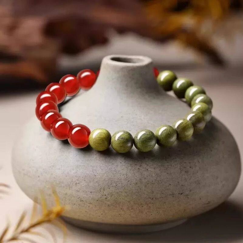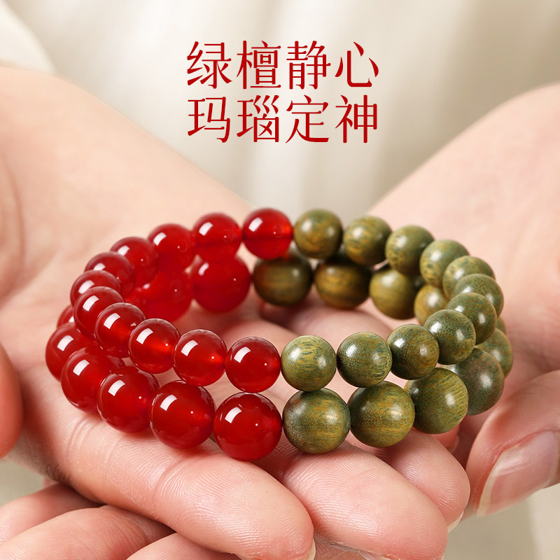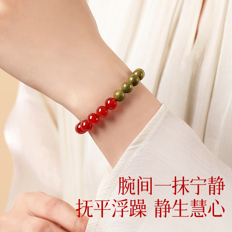 lisv天然红玛瑙绿檀木手串手链女款佛珠木质檀香新中式文玩黑曜石