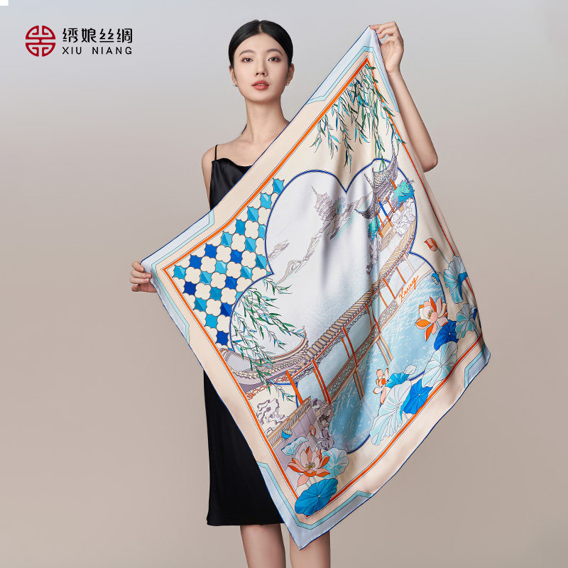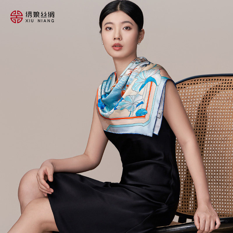 绣娘丝绸真丝丝巾系脖高级感新款方巾100%桑蚕丝披肩外搭送礼礼盒