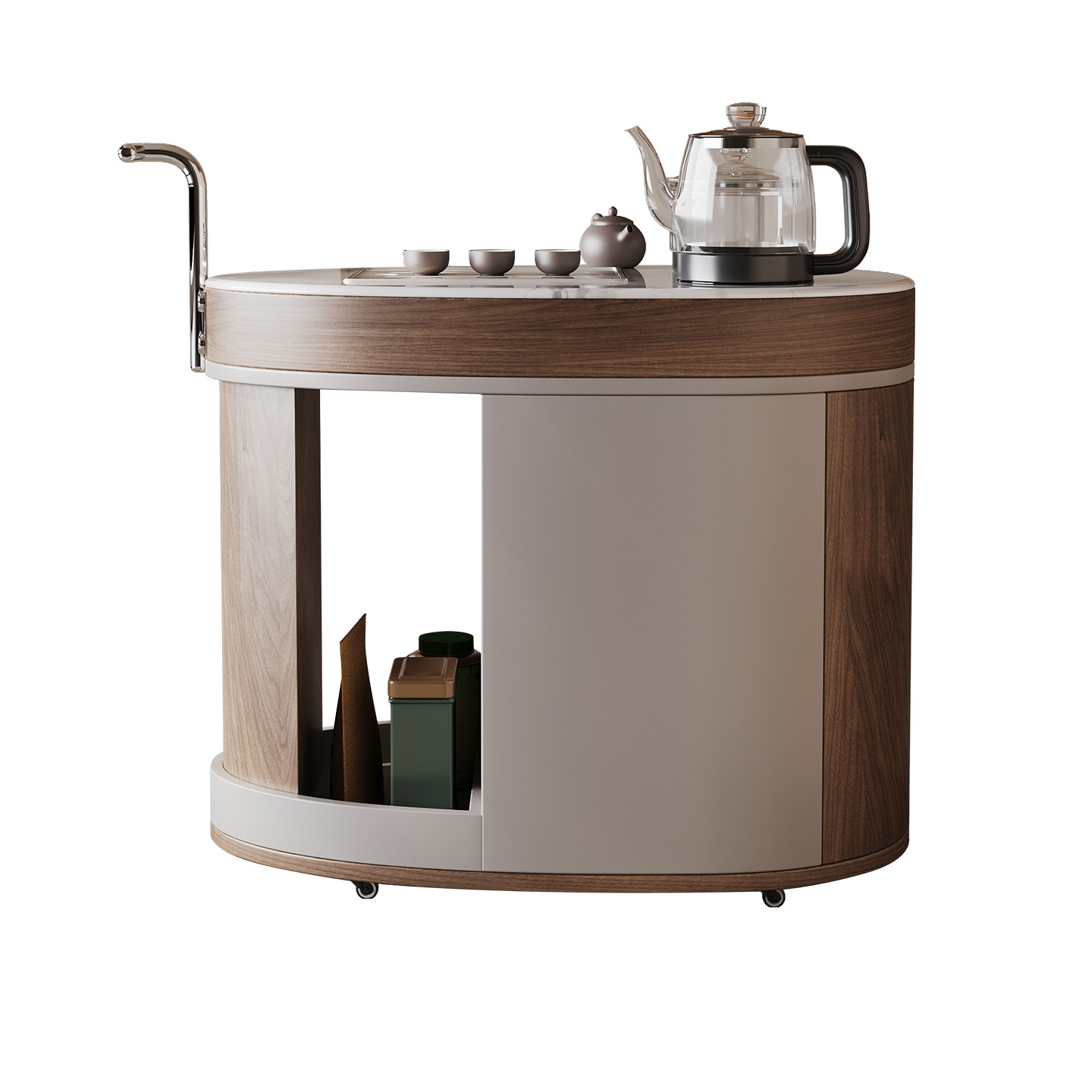 意式轻奢微晶石移动小推车边几小户型客厅储物设计带煮茶功能茶车