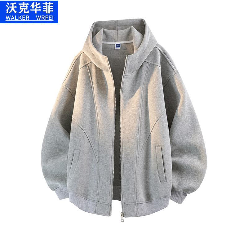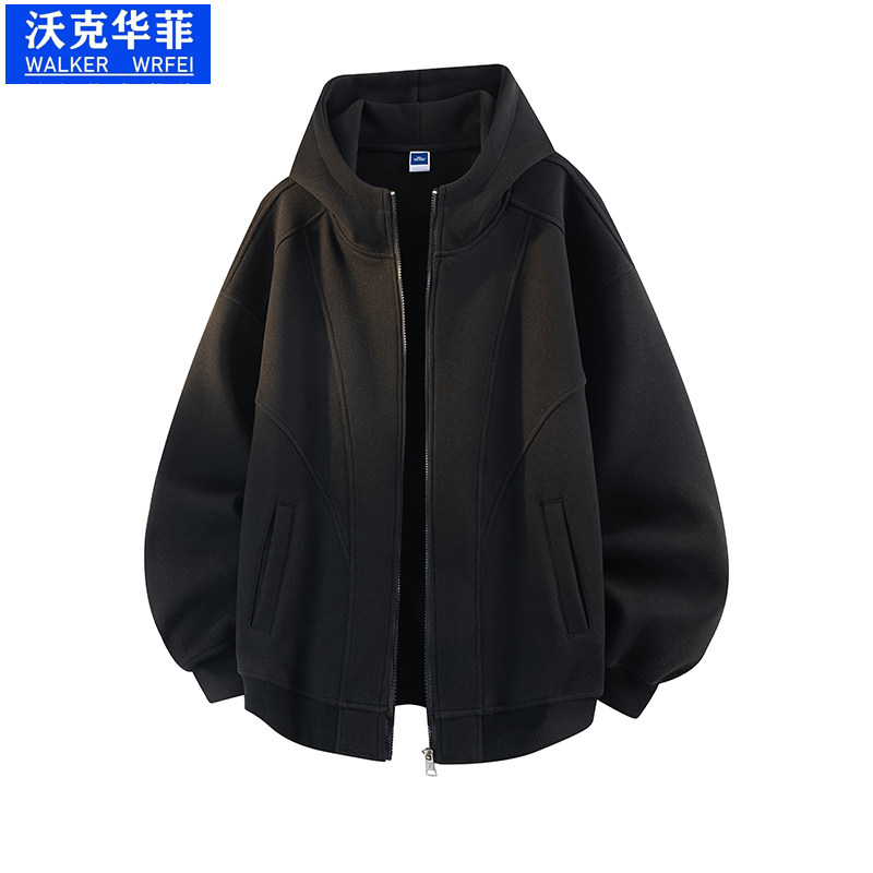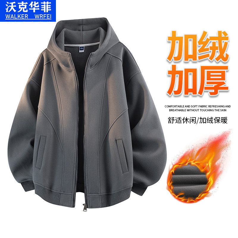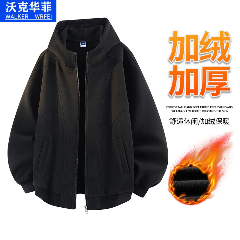 沃克华菲开衫卫衣男秋冬装夹克连帽上衣港风重磅加绒外套速干防风