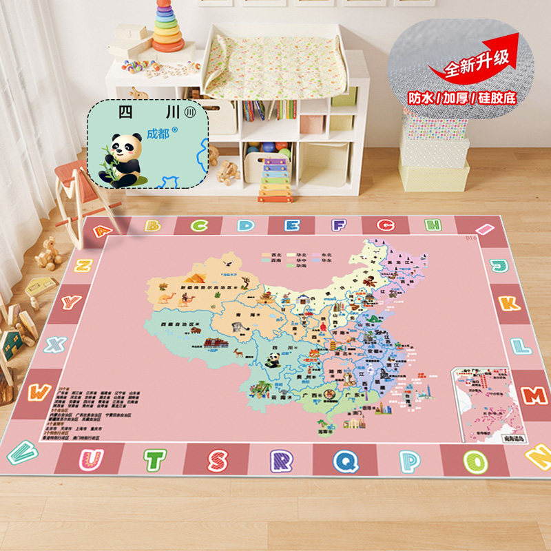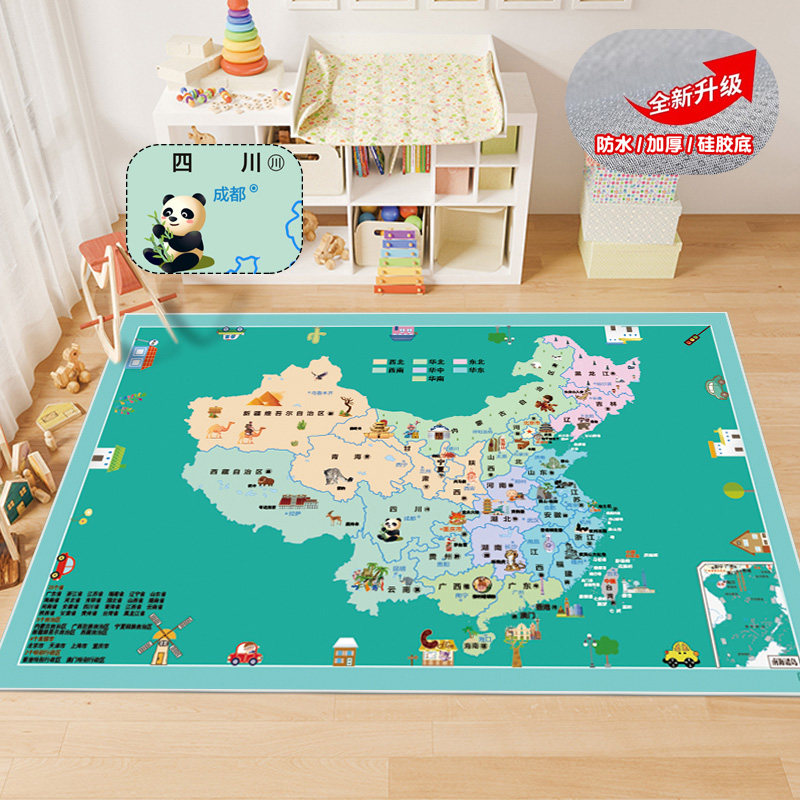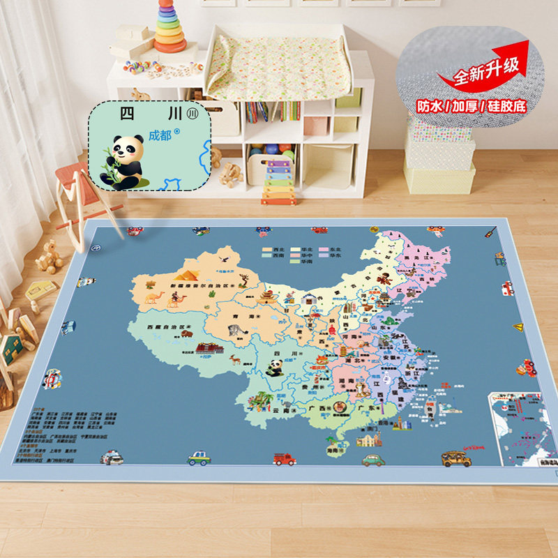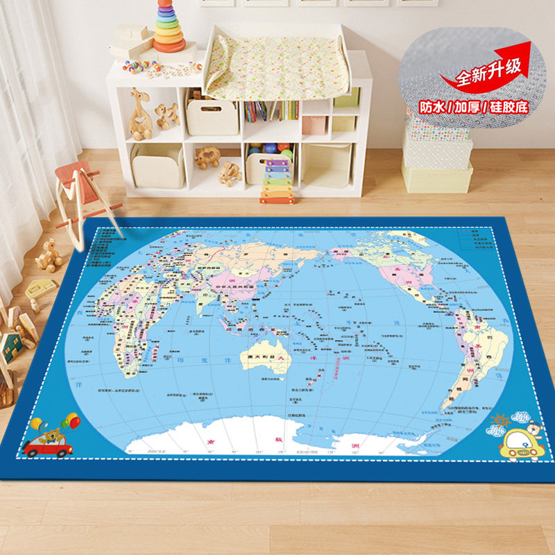 儿童房阅读区中国世界地图地毯幼儿园客厅玩耍游戏毯早教卧室地垫