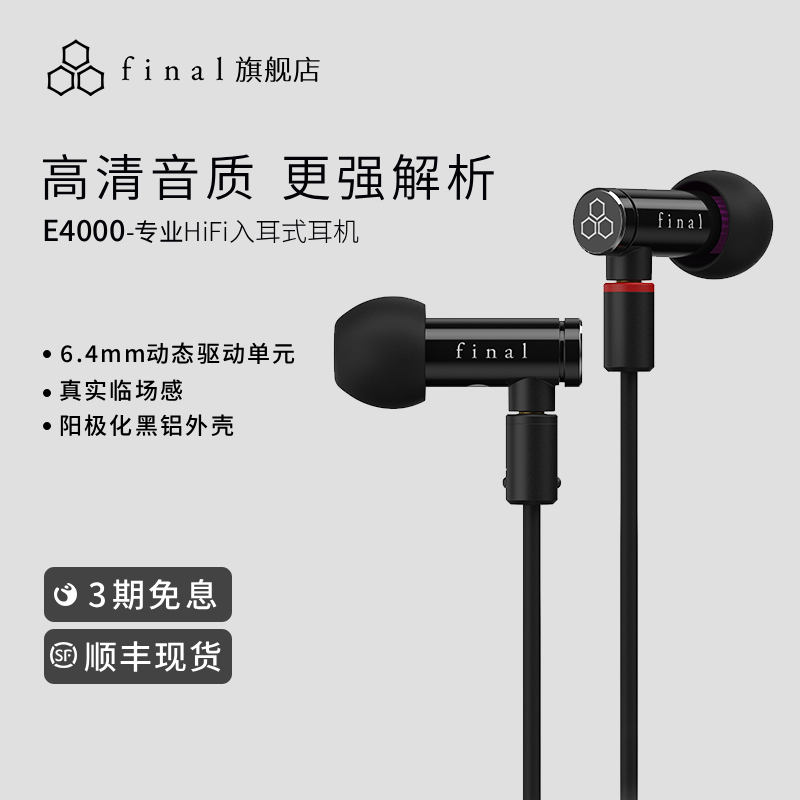 Final E4000入耳式耳机hifi重低音适用华为有线人声监听动圈耳麦