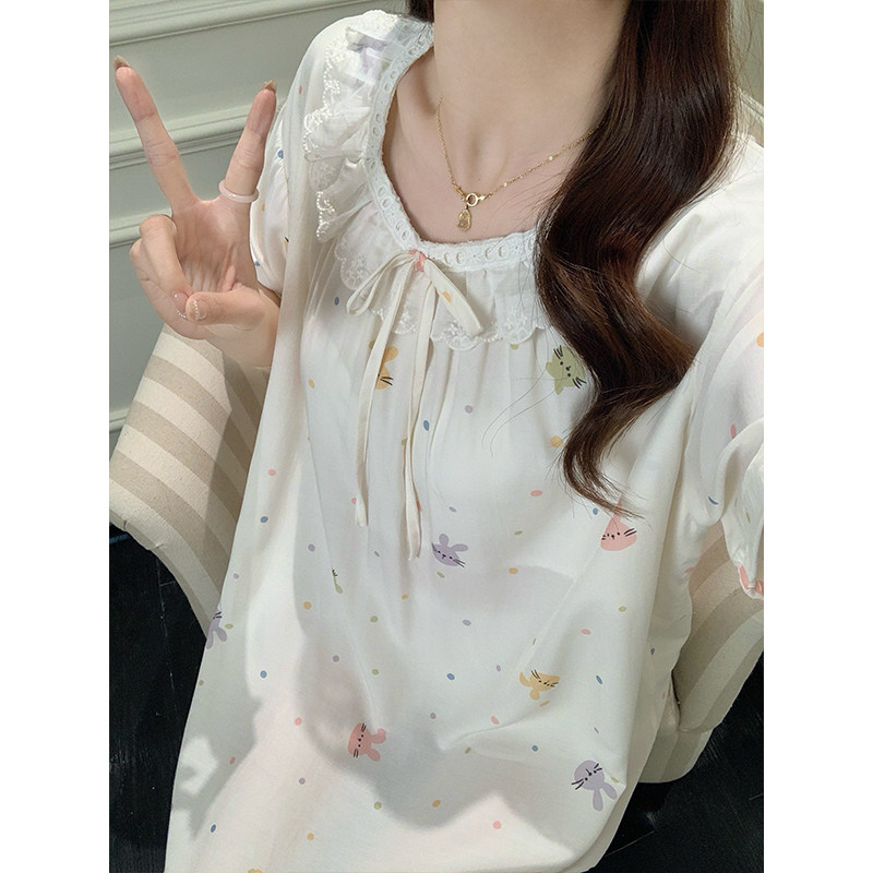 三福睡裙女款春夏季净雪花棉抗菌睡衣甜美印花宽松趣味短袖家居服