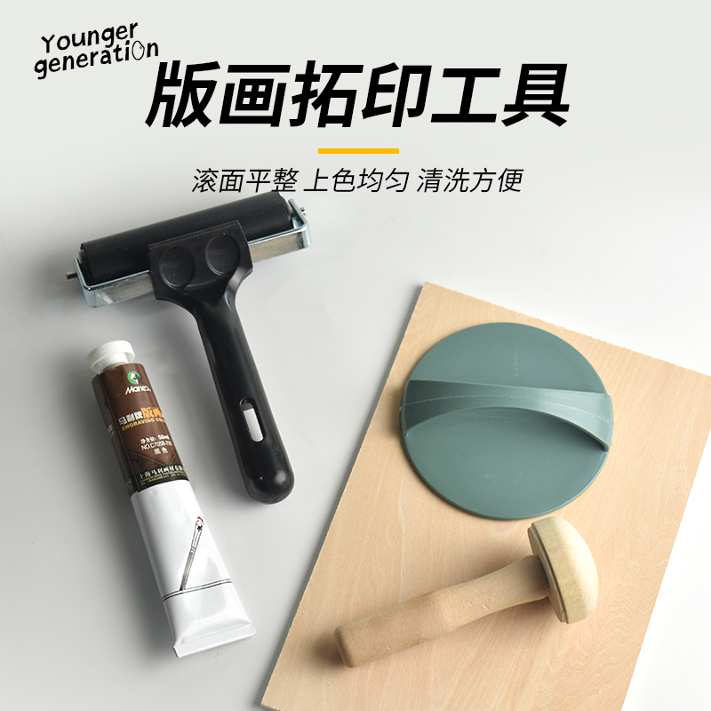 版画木蘑菇绘画拓印马莲 A4绿色PVC胶板软滚筒滚轮 凸版画拓初学者A5木刻板马利油墨颜料50ml木雕刻刀橡皮章