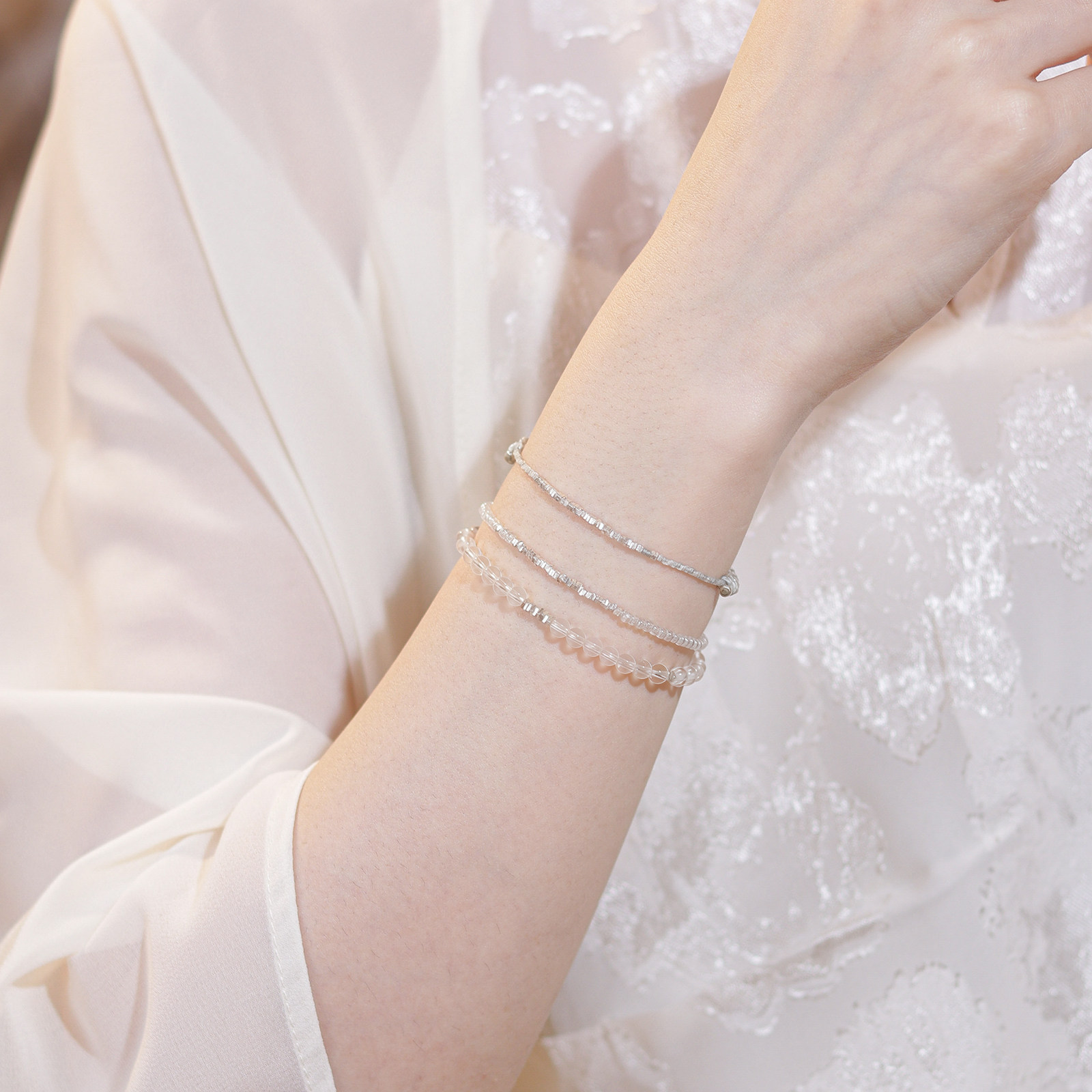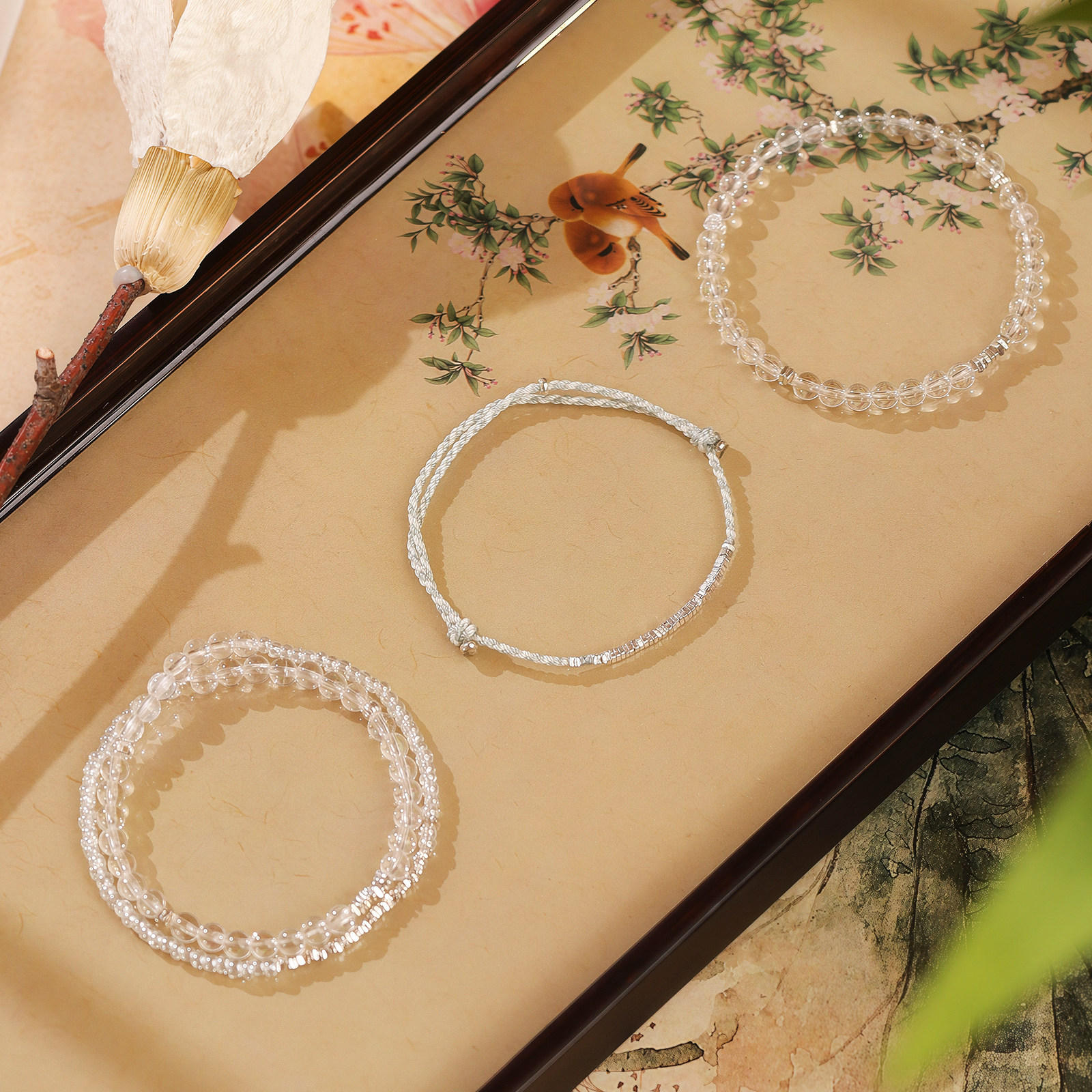 净语天然白水晶小手串女款碎银子手链编织绳转运串珠和田玉招财