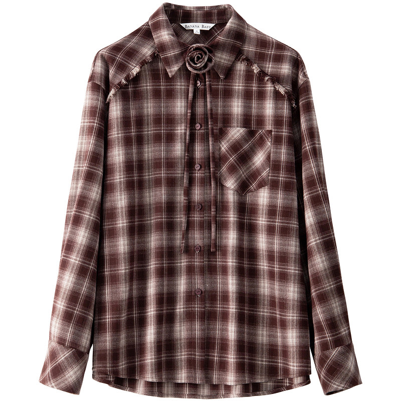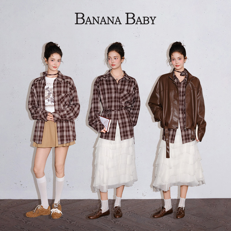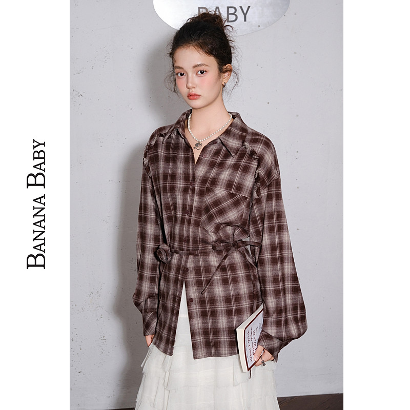 【刘些宁同款】BANANA BABY2025年秋冬新款美式格纹衬衫女系带