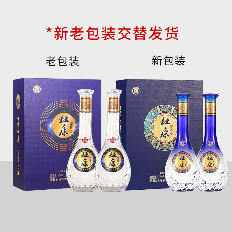 杜康礼盒盛世蓝色经典浓香型优级白酒 含礼袋52度酒水500ml*2瓶