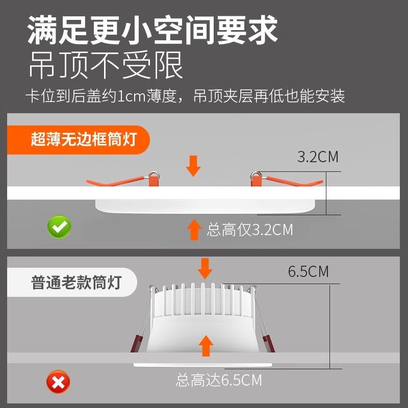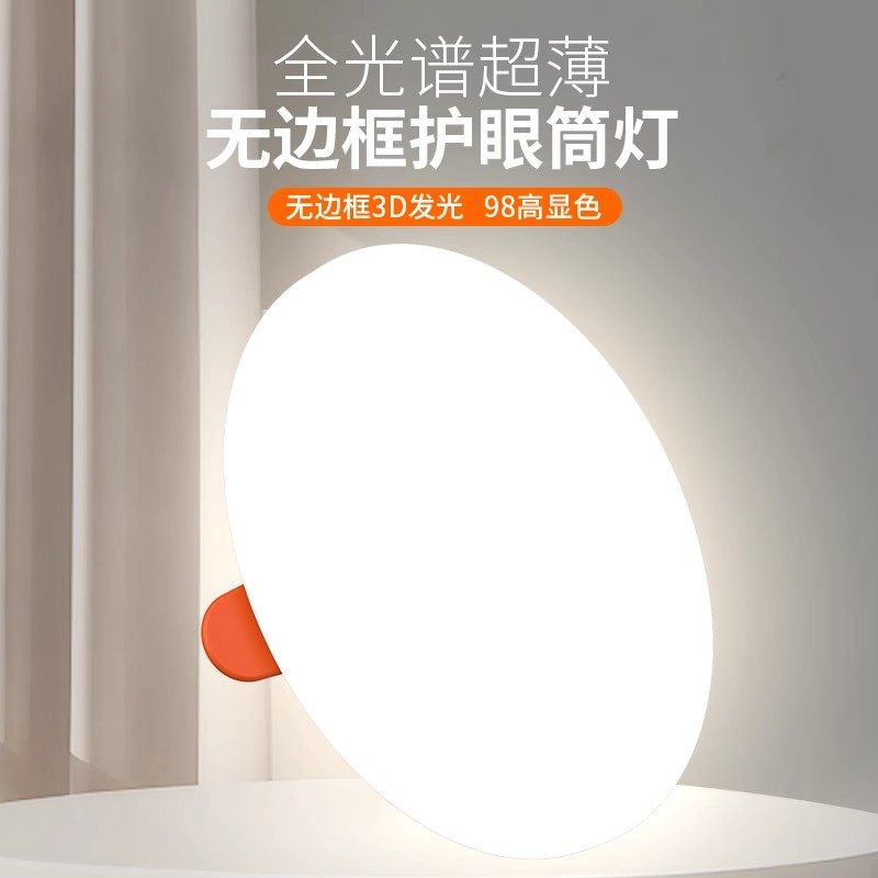 全光谱无边框面板灯超薄筒灯自由开孔2寸3寸4寸6寸嵌入式孔灯客厅